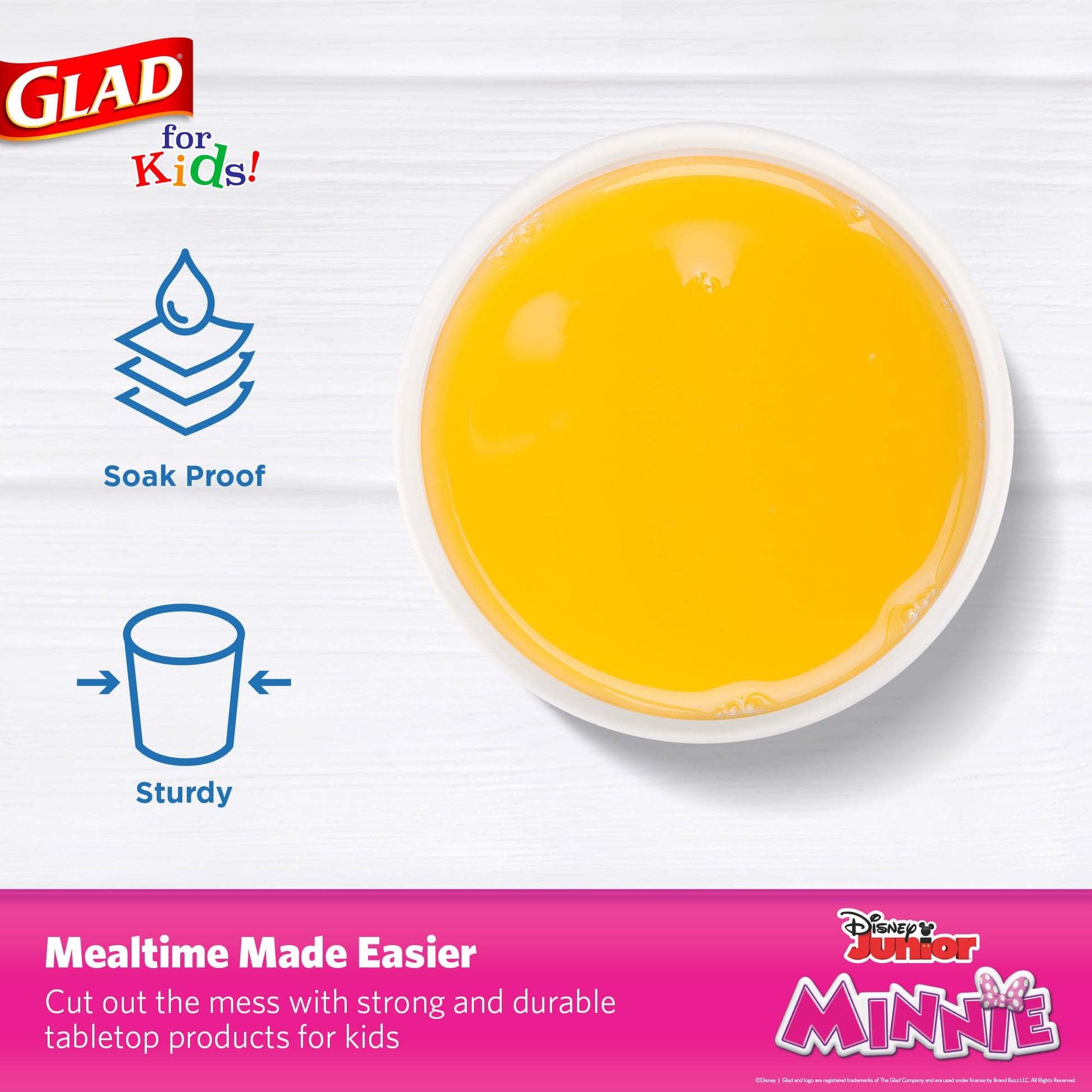 Dress up your dishware with GLAD for Kids! We aim to make even the pickiest eaters smile, whether youre having a themed occasion or simply trying to inspire a bit of fun at the dinner table. We believe in bringing a little magic to the mundane by bringing your familys favorite characters and colors to the table. The Mickey and Friends 9oz paper cups feature a pink polka dot design. The Disney themed disposable tabletop collection is sure to be a hit with both the young and the young-at-heart. Glad for Kids Mickey and Friends themed paper cups make mealtimes fun without leaving your sink a mess. Kids cant wait to dig into the fun with princess-themed paper cups. With the Mickey and Friends collection of paper tabletop products, breakfast, lunch, dinner, dessert, and snack time are more fun than ever. Enjoy snacks and meals with these 9oz paper cups in a 24-count package. Sturdier than traditional paper cups, Glad for Kids cups are perfect for everyday and every occasion. Theyre soak-proof, so they wont go soggy while your little one finishes up their last bites. Plus, parents love that our 9oz cups are slightly smaller than most cups, making these kid-friendly cups perfectly sized for tiny hands. And when mealtime is over, clean-up is a cinch. Simply toss these disposable paper products - Glad for Kids makes mealtime easy from prep-time to clean-up. Be sure to stock up on the whole collection of Mickey and Friends print paper tableware from Glad for Kids, and browse other fun designs for busy families looking to inspire fun and healthy mealtimes.
