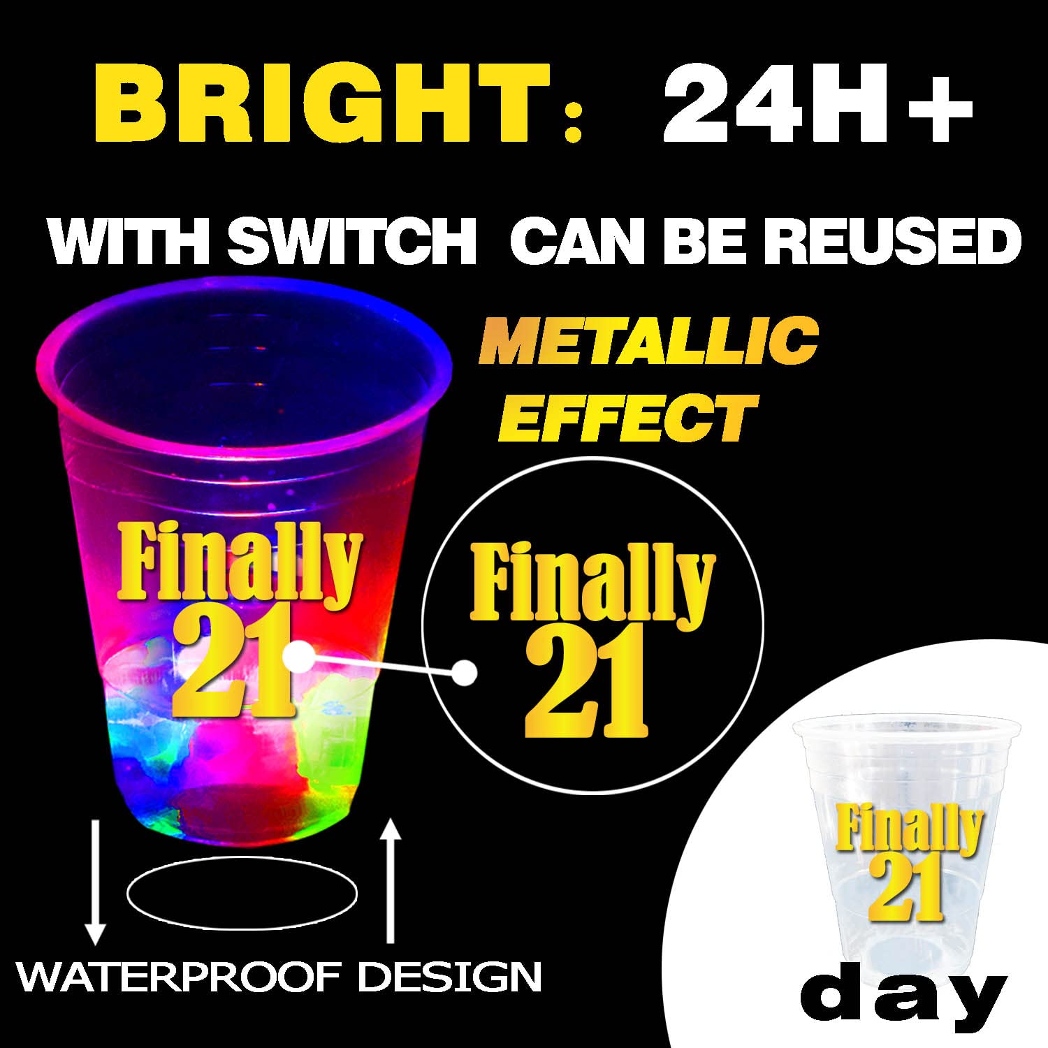 Glowing 21St Birthday Cups: -Prefect 21St Birthday Gift For Him Or Her, Or 21St Anniversary Gift For 21St Birthday Parties Will Add An Thematic Touch To Dining Tables. -21St Birthday Party Decorations For Him, 21 Birthday Decorations For Her, 21St Birthday Table Decorations Or As A Party Favors. -Glow 21St Birthday Themed Party Cups Are Great For Ice Beverage, Ice Cream, Cocktails, Soda, Juice, Candy, Snacks, And More. What In Set: -24 X 16Oz Plastic Cup(With 21St Theme Gold Stickers) -22 X Flash Color Led Light -2 X Gold Led Light -24 X Waterproof Sticker