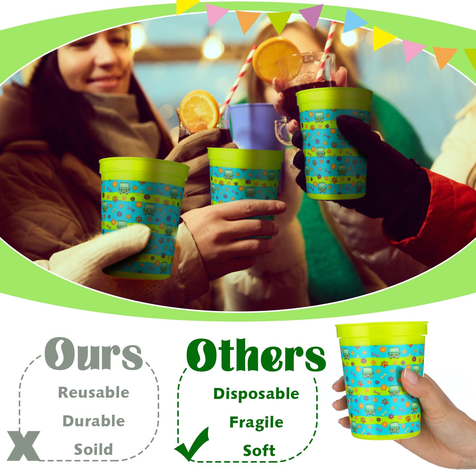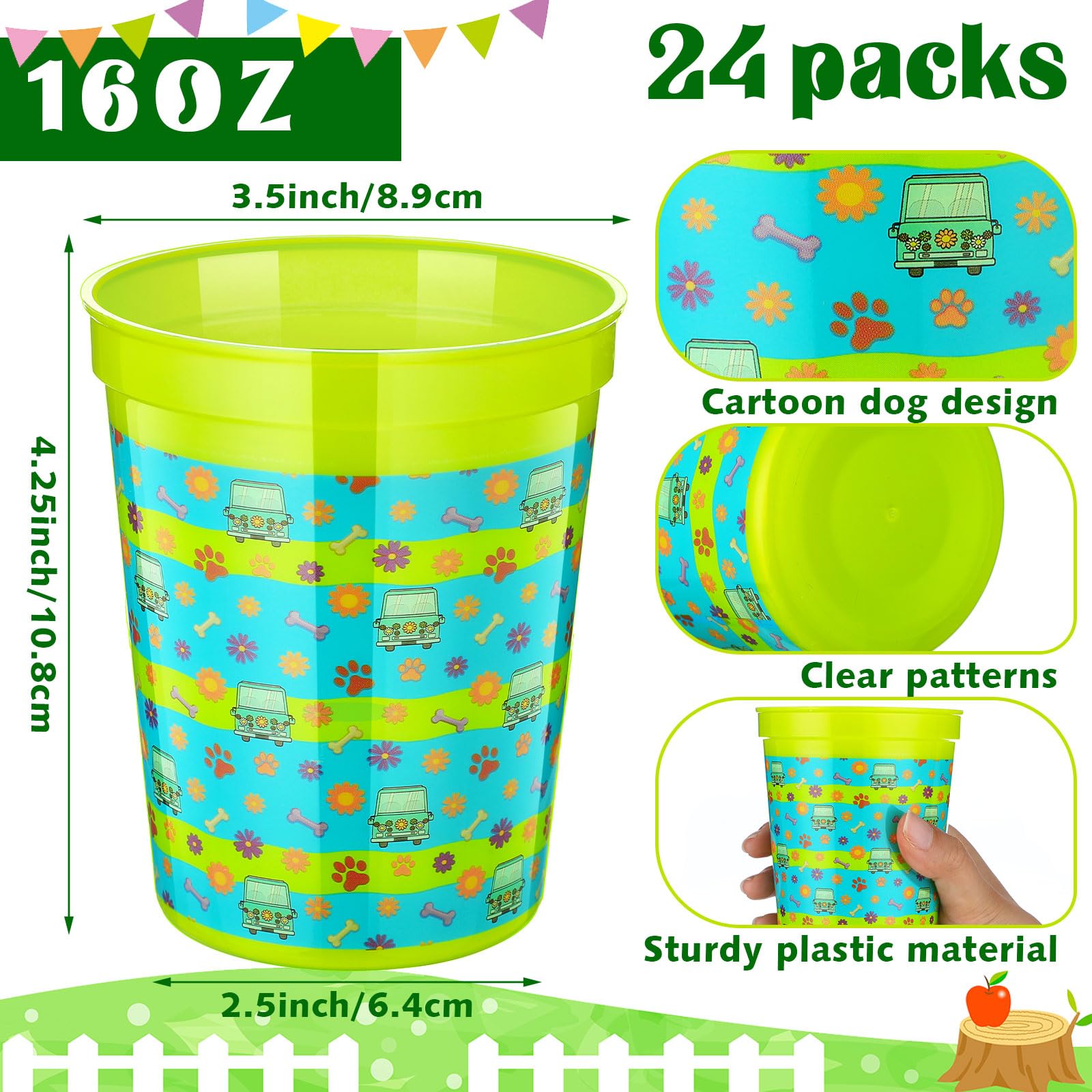 Qinyoung 24 Pack Mysterious Car Theme Party Favor Cups Plastic 16 oz Cartoon Dog Mystery Bus Soby Party Favors Daisy Flower Dog