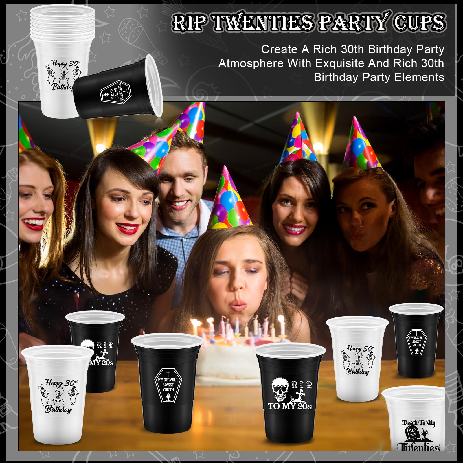 • Q: Are the cups suitable for outdoor events like camping? A: Yes, the RIP to My 20s cups are sturdy and reliable, making them ideal for outdoor events, camping, or any party setting.