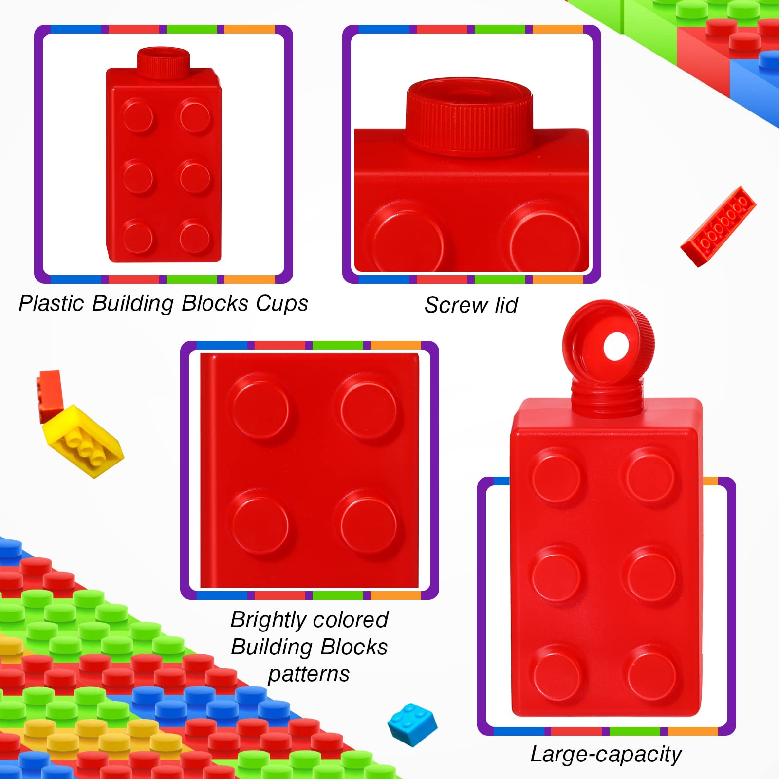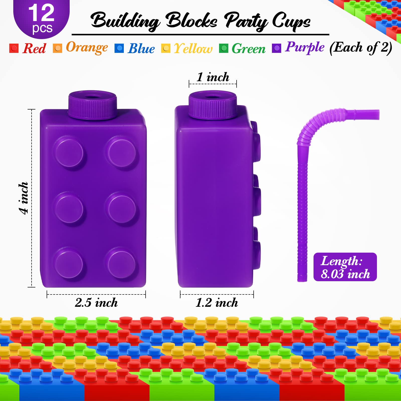 Sawysine 12 Set Building Blocks Cups 10 oz Blocks Reusable Party Favors Cup Plastic Colored Brick Drinking with Lids and Straws