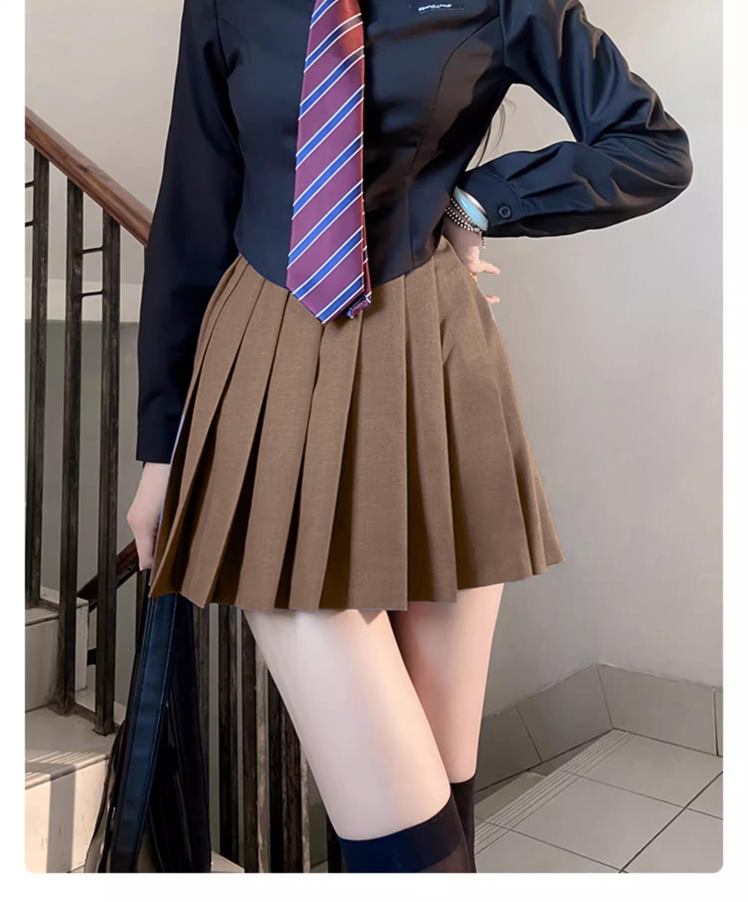Beautifulfashionlife Womens School Uniform High Waist Flat Pleated Skirts (Xl,Dark Brown)