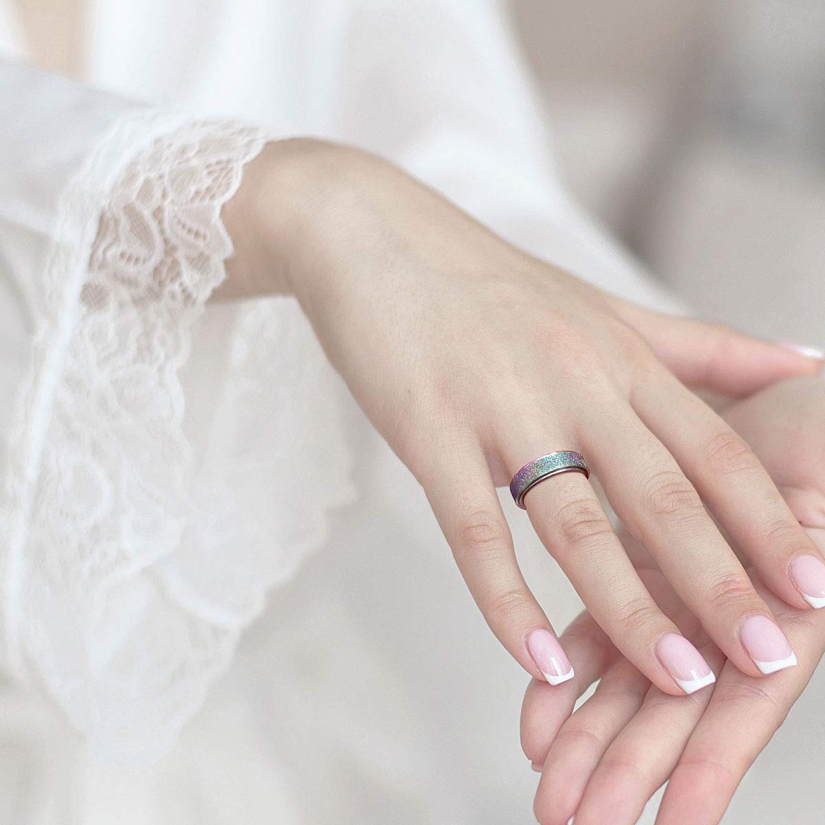 DURSI Spinner Ring for Women Mood Ring for Kid Fashion Stainless Steel Fidget Ring for Anxiety Sand Blast Finish (Chameleon 6mm,