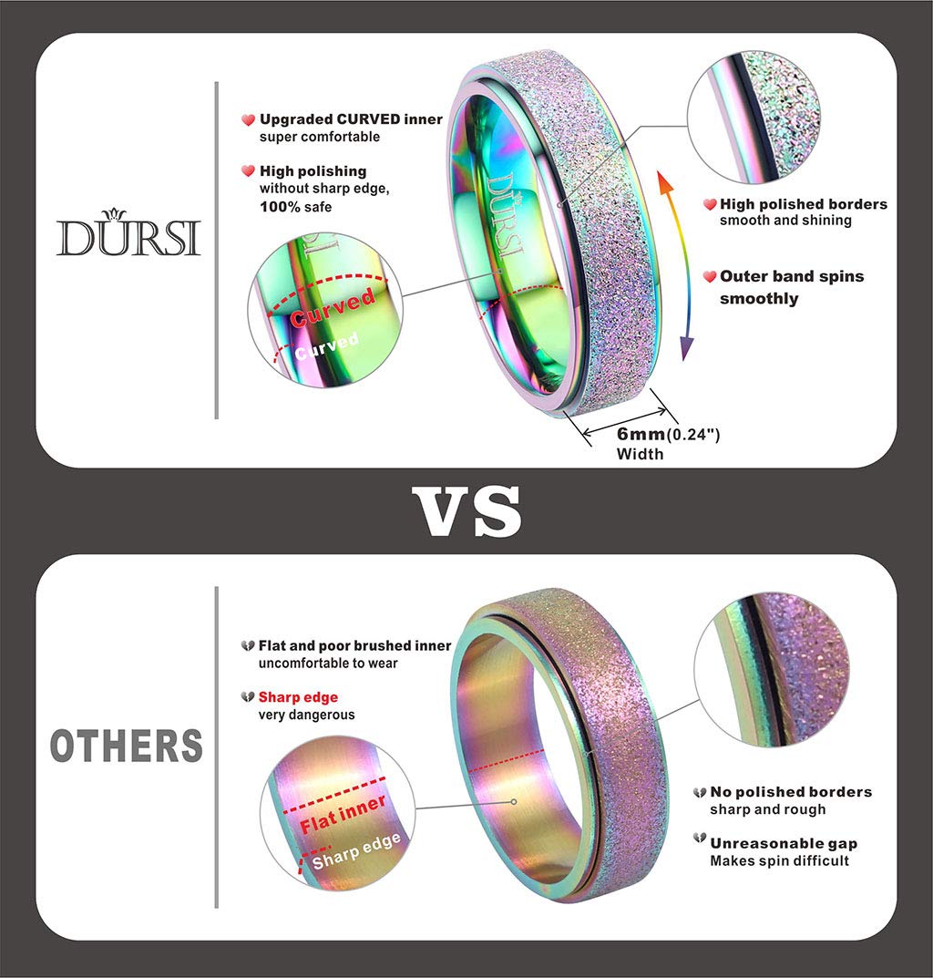 View compareDURSI Spinner Ring for Women Mood Ring for Kid Fashion Stainless Steel Fidget Ring for Anxiety Sand Blast Finish (Chameleon 6mm,
