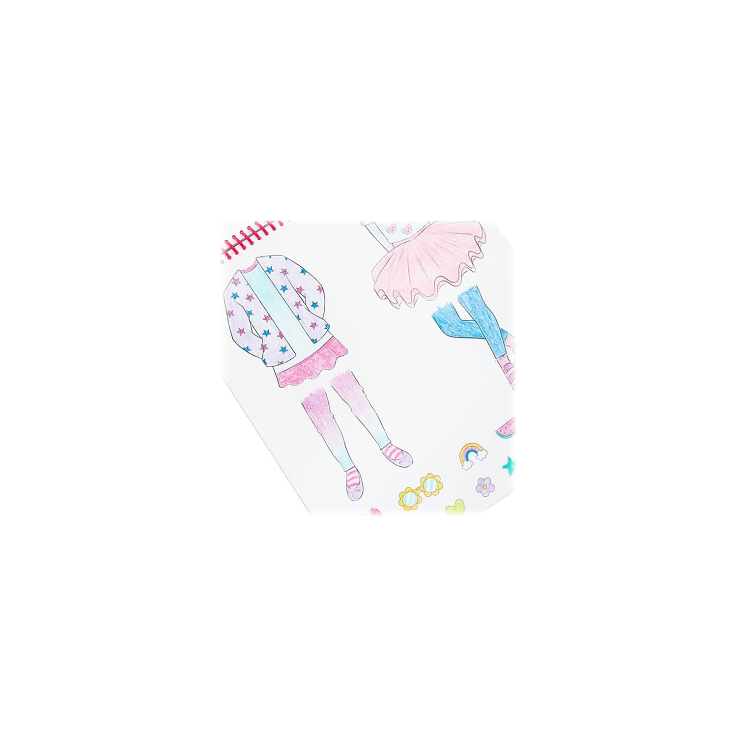 Color your very own paper doll cuties! Large, easy-to-color dolls and outfit stickers stick (and unstick) for frustration-free design and display. Mix and match fashions for endless adorable outfits - with 24 dolls and 160 outfit stickers, the fashion fun never ends. All pieces are contained in one travel-ready, spiral-bound book great for fashion design on the go.