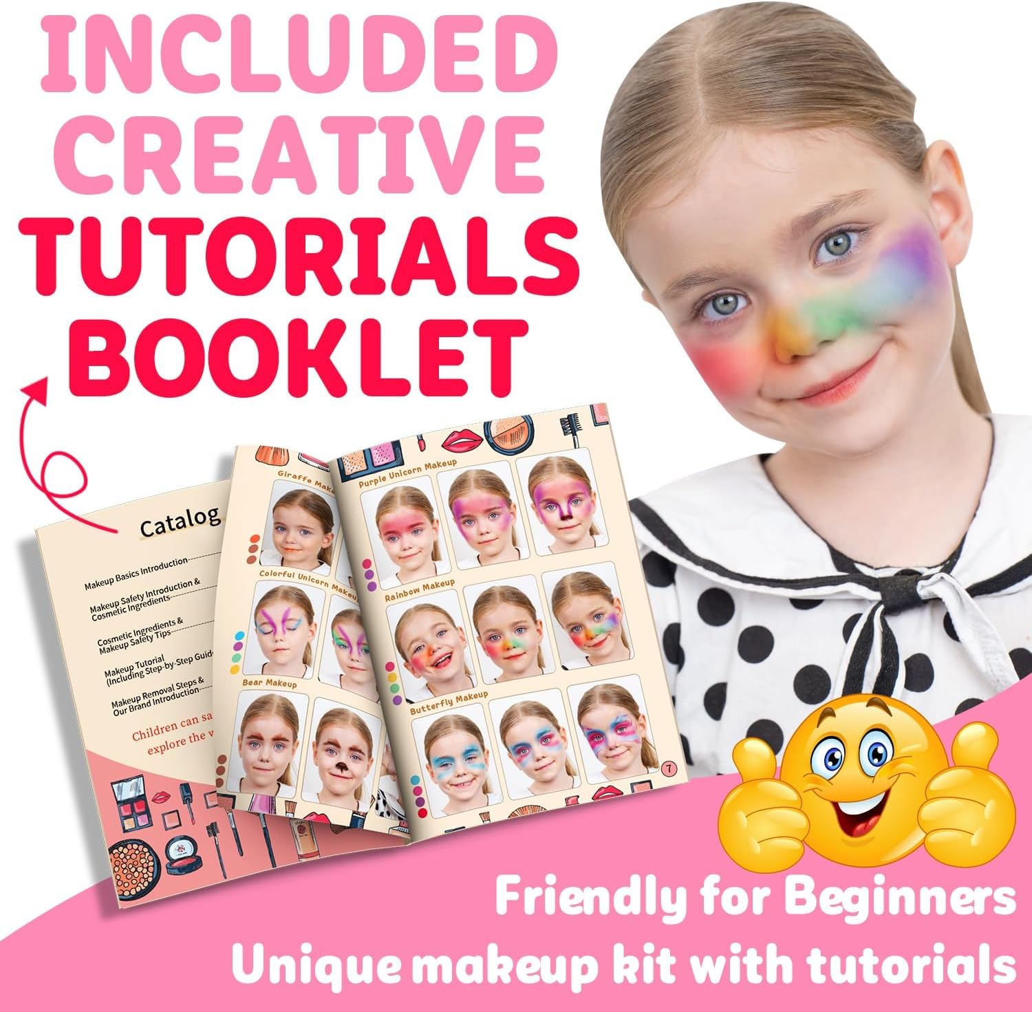 Kid-friendly Girls Makeup Kit - Best Make Up Toys Gifts for 3 4 5 6 7 8 9 10+ Years Old Girls Little girls are curious about mommys cosmetics or everything after they grow up. This childrens makeup kit will realize the girls desire to start exploring becoming beautiful, and save mommys cosmetics or purse! A Carrying Case for All, No Longer Worry About Storage and Carrying This kid's makeup set has many options and stores away in a case that is easier to organize than a pouch case. The cosmetic case contains all the little girls need for make up and dress up. It comes with a handle that can easily carry it anywhere, makeup anytime you need! Package Included: 15 x Eye Shadow Color 9 x Gloss Eye Shadow Color 6 x Lip Gloss Color 7 x Makeup Brush 2 x Lipstick 2 x Ring Lip Gloss 1 x Pink Tube Lip Gloss 1 x Eyebrow Pencil 1 x Pressed Powder 1 x Blush 1 x Makeup Sponge 1 x Powder Puff 1 x Toe Separator 1 x Comb with Mirror 1 x Empty Spray Bottle 1 x Storage Case Please Note: * All parts for external only. * Please skin test for the first time. If skin sensitive, stop using it. * Do not use on areas with skin wounds. * Please store it in a cool place and stay away from the fire. * All items are strictly forbidden to be swallowed.