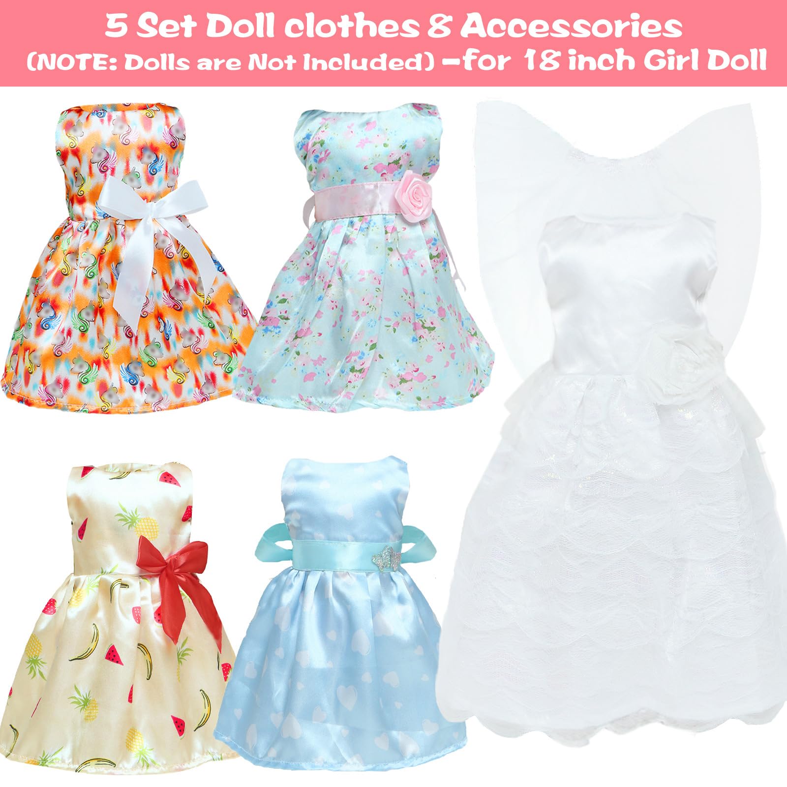 Mczqxw 5 Sets 18 Inch Girl Doll Wedding Gown, Fashion Doll Dresses, Doll Clothes & Accessories, 1 Bride Gown With Veil, 4 Satin