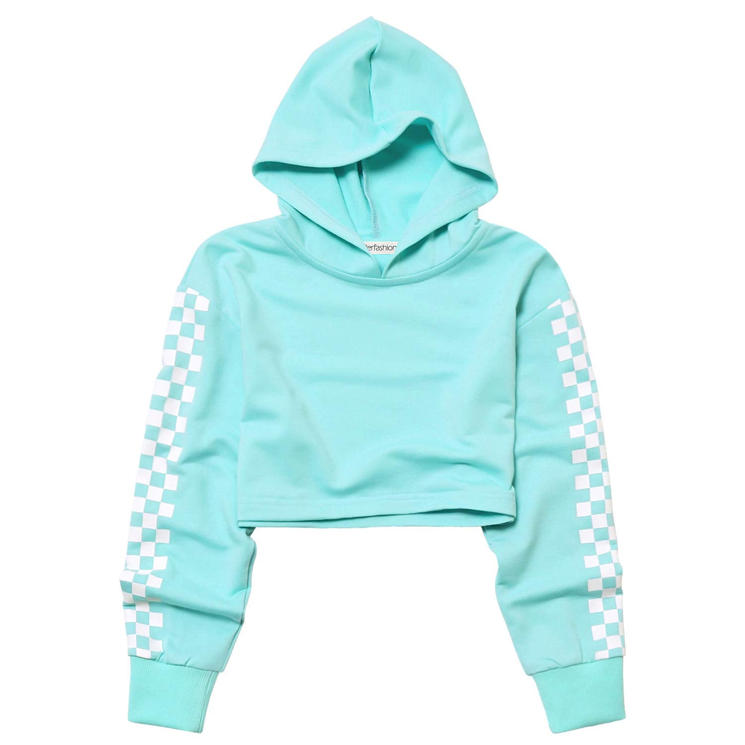 Perfashion Girls Crop Top Hoodie Cropped Sweatshirts Plaid Long Sleeve Hoodie Mint 10T 11T