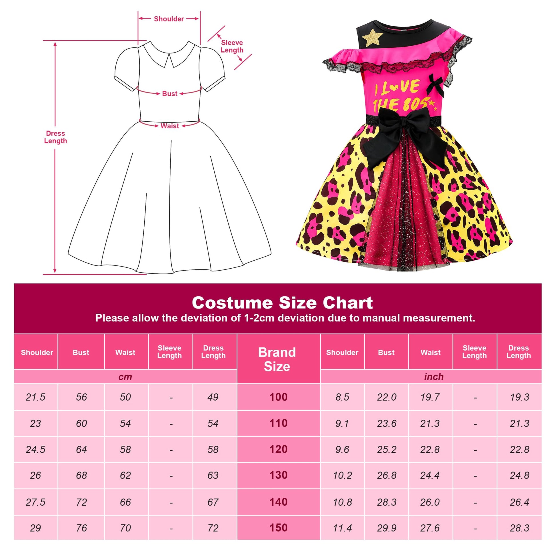 View compareReliBeauty Girls 80s Costume Kids Fancy Dress Costumes Accessories for Girls Cosplay 1980s Theme Retro Party 10-12/150