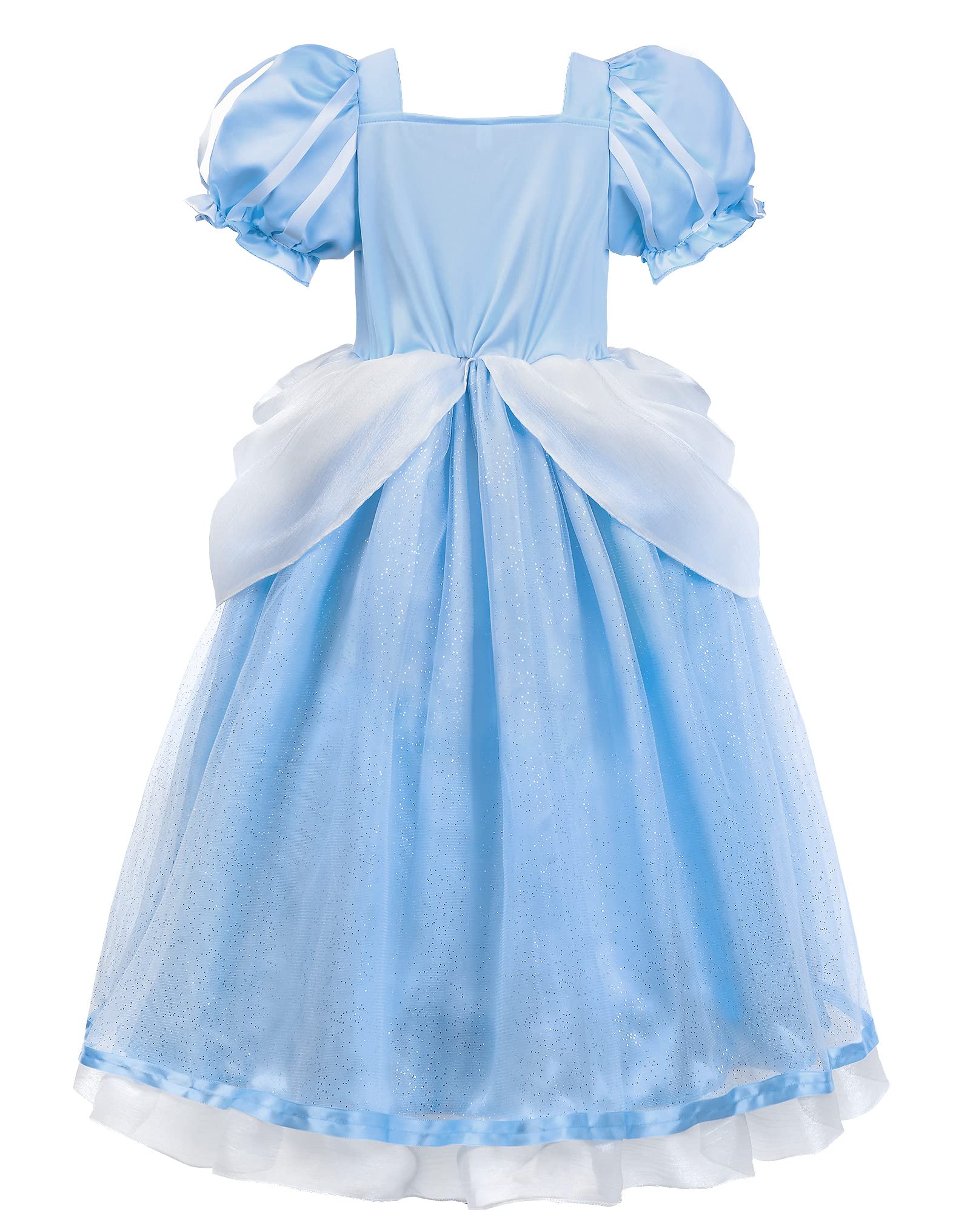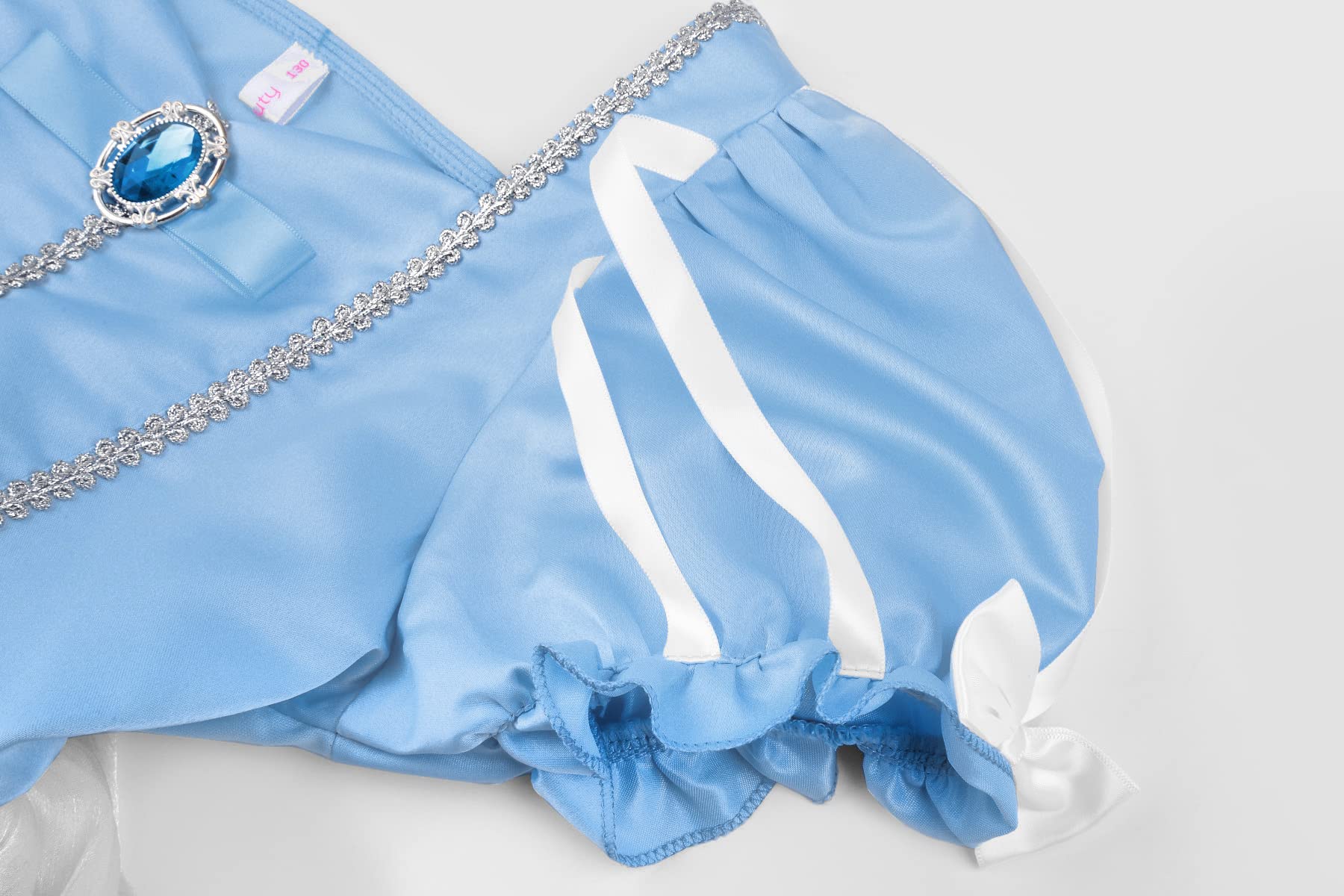 Fabric: Shell: 100% polyester; lining: 100% cotton | Features: The silver ribbon on the front chest is shiny and decorated with bow diamonds to add a sense of nobility; puff sleeves with webbing and bows; skirt is made of shimmering fabric to add a fairy tale feel; the petals on both sides of the waist are designed to make the skirt more fluffy. | Material: Made of soft, breathable, high-quality fabric and quality construction for a comfortable costume | Applications: Perfect for theme party, birthday, Christmas party, Halloween, photo prop, career day, dress up party, stage performance, role play and so on | Attention: Please check our size chart before you purchase this costume