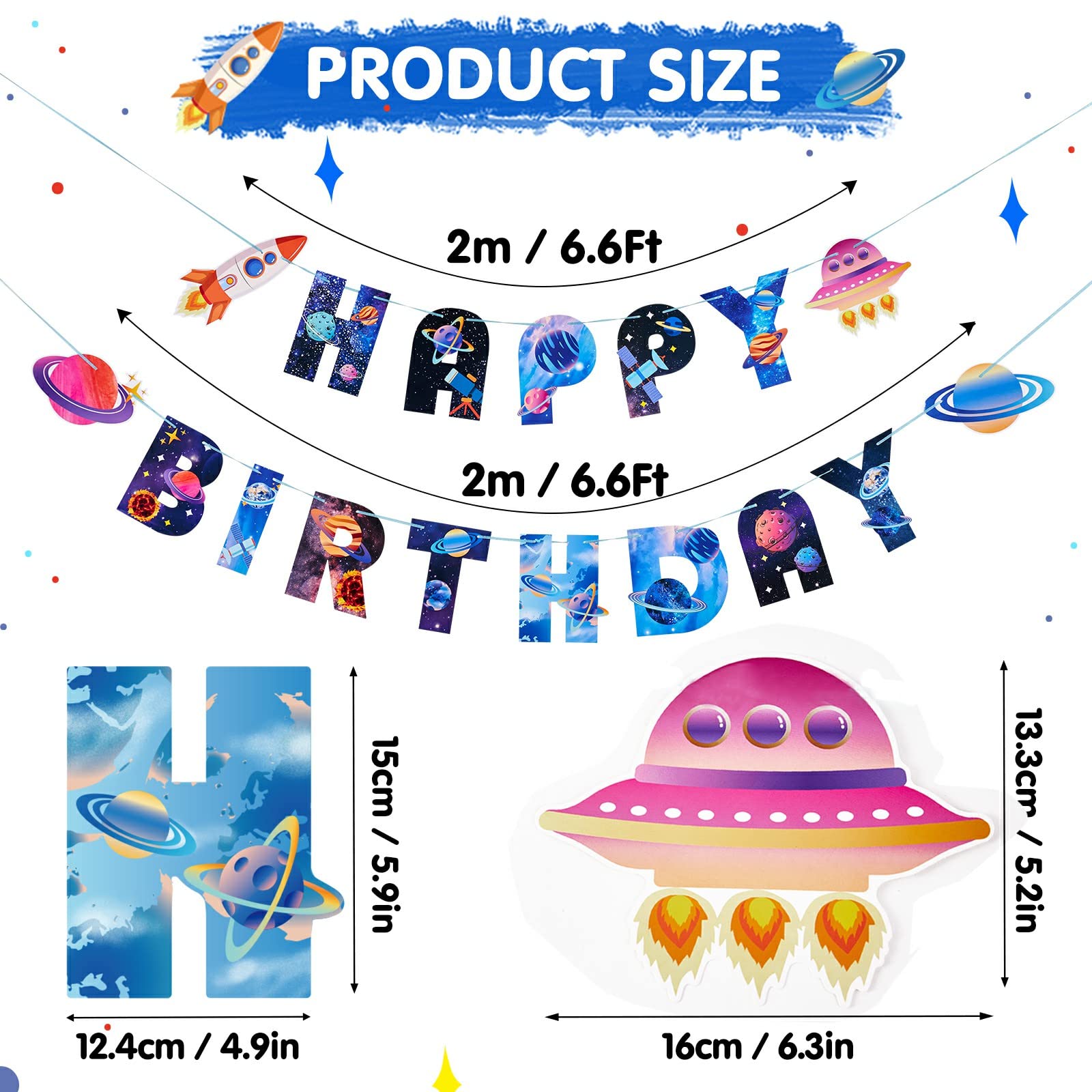 - Q: How easy is it to hang the Space-Themed Happy Birthday Banner? A: Hanging the banner is incredibly easy thanks to its pre-cut holes and included string. This makes decorating a breeze, allowing you to quickly set up the banner for your party.