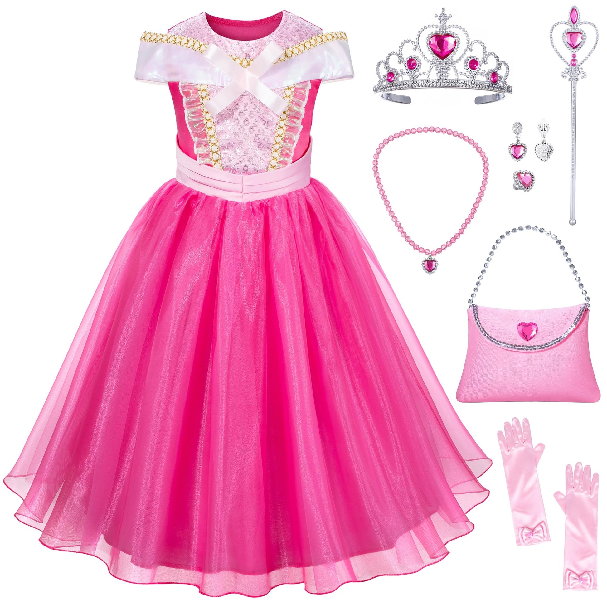 Topney Pink Princess Costume Dress For Little Girls - Sleeping Beauty Dress With Princess Accessories For Birthday Halloween Cos
