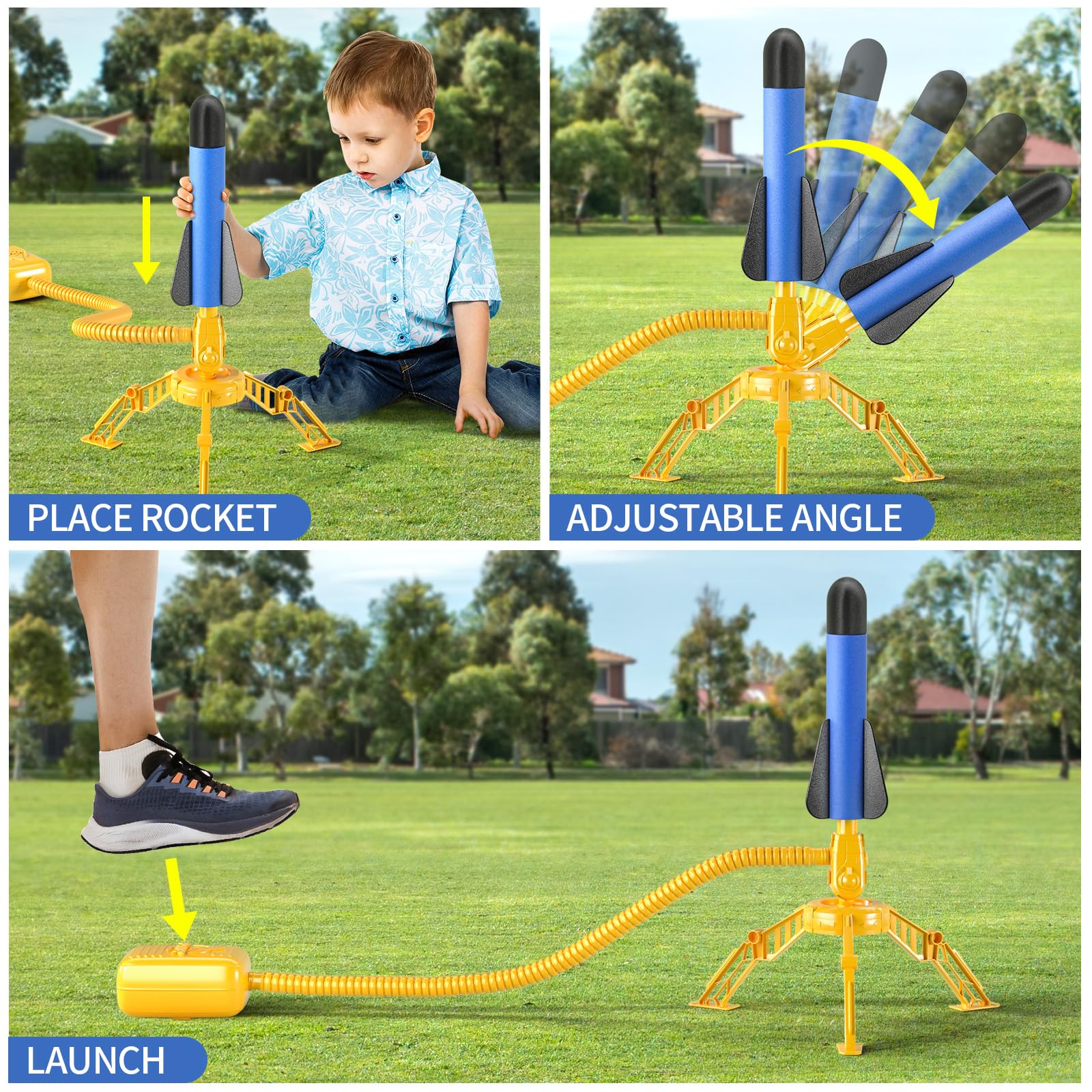 View compareTemi 2 Pack Rocket Launcher For Kids, 12 Foam Rockets And 2 Launcher Pad, Launch Up To 100+Ft, Kids Outdoor Toys, Birthday Gift