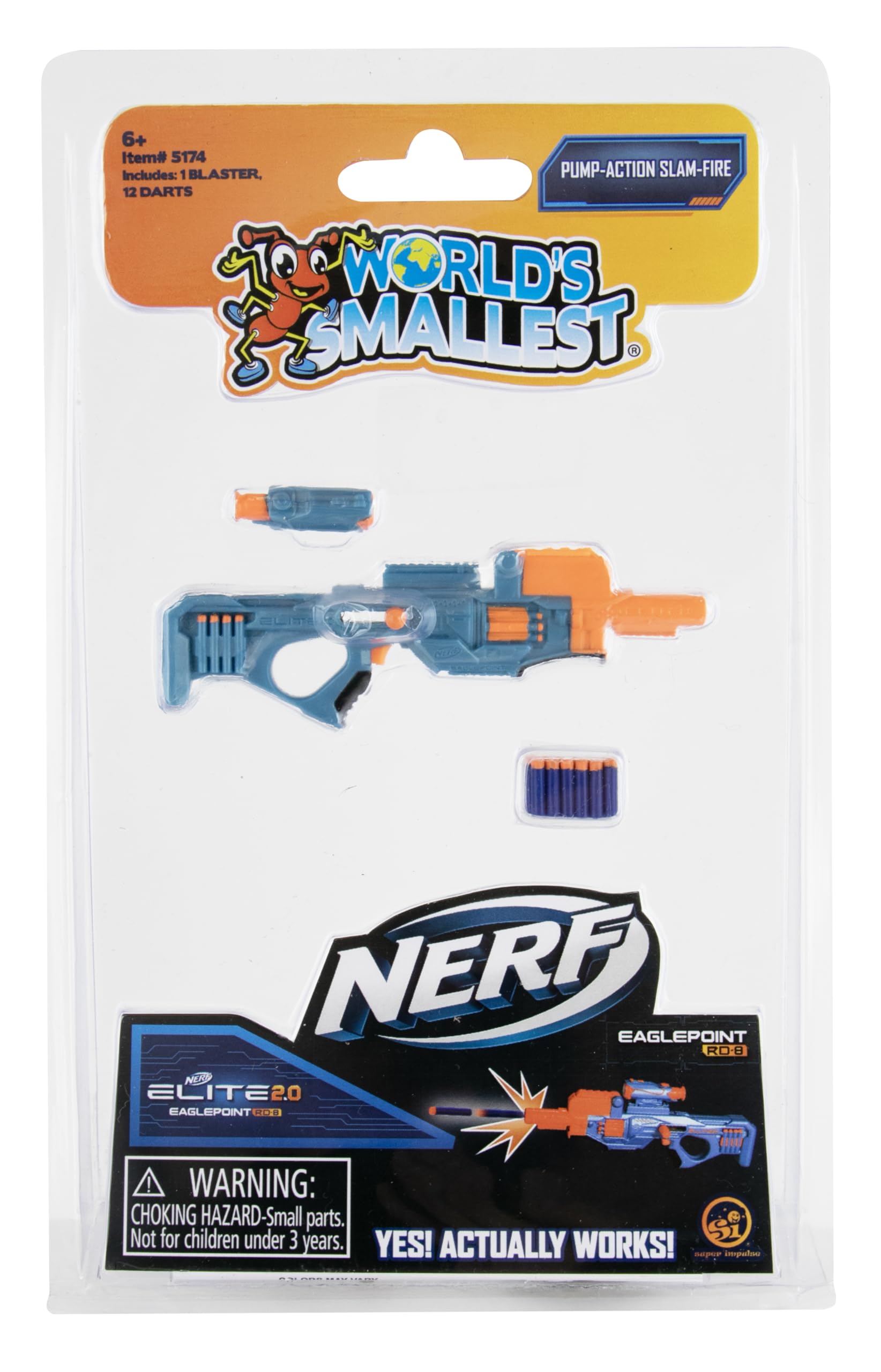 - Q: What styles are available for the Worlds Smallest Nerf Elite 2.0 Blasters? A: The Worlds Smallest Nerf Elite 2.0 Blasters are available in three distinct styles: RAPIDSTRIKE CS-18, EAGLEPOINT RD-8, and LONGSHOT CS-6, with styles selected at random.