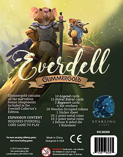 - Q: What components are included in the Everdell Glimmergold Upgrade Pack? A: The Everdell Glimmergold Upgrade Pack includes every component found in the Collector's Edition, such as Extra! Extra! Cards, Legendary Cards, Rules for Collector's Edition Cards, Rugwort Cards, Rat Workers, an Upgraded Victory Point Token Set, Upgraded 'Occupied' Tokens, and an Upgraded 8-sided die.