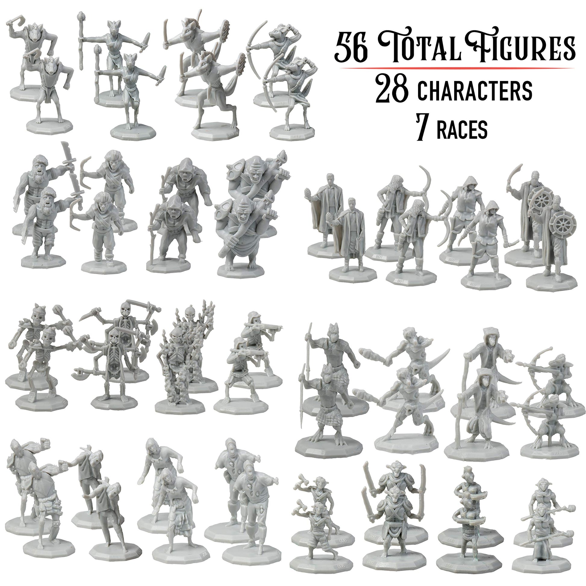 Features high definition painted artistic sculpts for all your campaigns! | Specifically compatible D&D Pathfinder and other tabletop games | Each set includes 28 different unpainted realistic creature designs- Includes Goblins, Orcs, Bandits, Gnolls, Kobolds, Skeletons, and Zombies | 28 Unpainted Fantasy Minis- compatible with Dungeons and Dragons & Pathfinder- Variety pack miniatures set for tabletop games