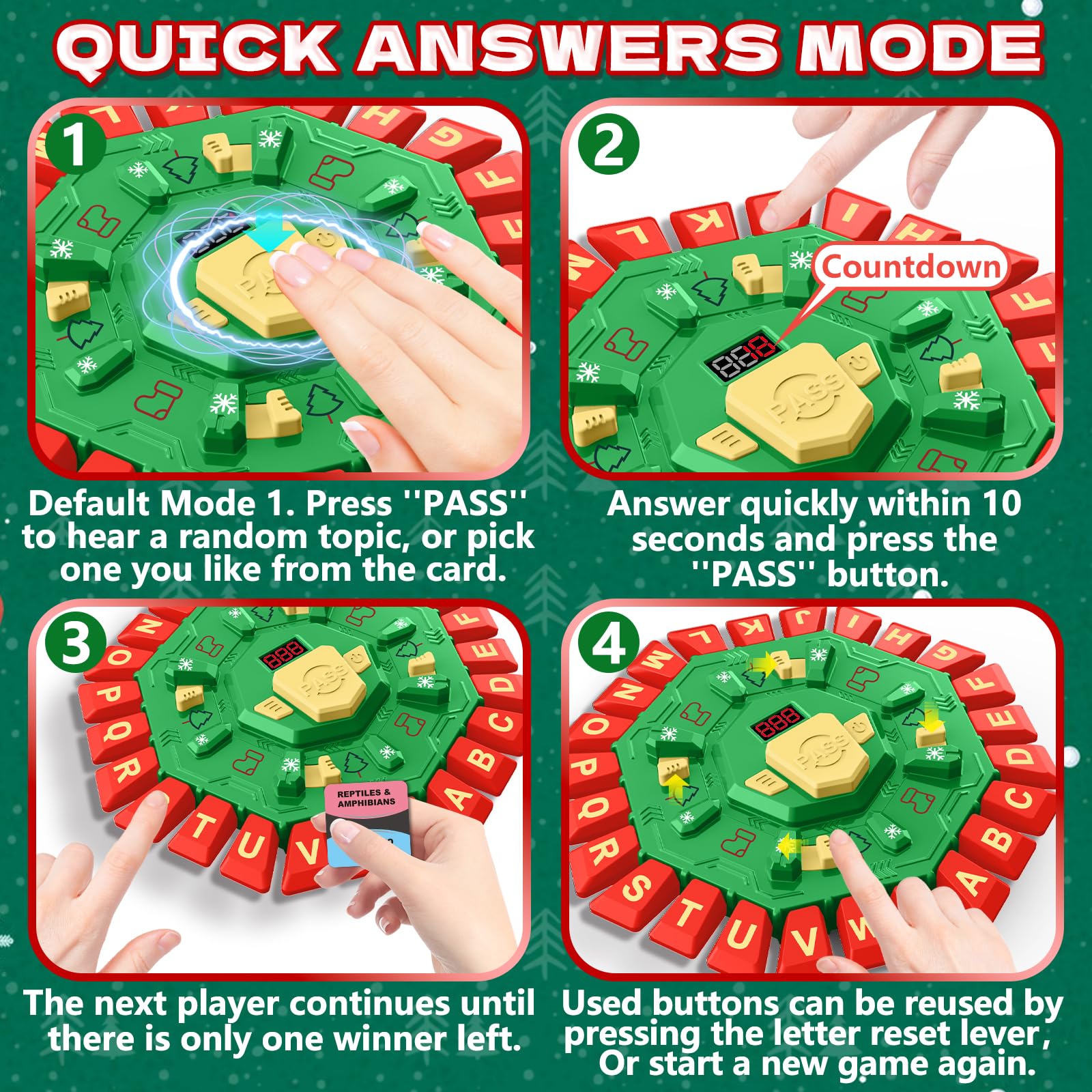 Resflycheng family board game is an exciting and fast-paced word game designed for players of all ages. Powered by 2 AA batteries (not included), this word game features a full 24-letter board, offering endless word combinations, unlike many other board games that limit your choices. The digital display and 10-trick countdown create a thrilling race against time, keeping players on their toes. With two modes-Normal and Exciting-Resflycheng card game delivers hours of fun, whether youre hosting a family game night, planning a party, or looking for a dynamic educational tool. Perfect for boosting vocabulary, critical thinking, and quick reactions, its an engaging game for both kids and adults, helping to improve language skills in an enjoyable and interactive way.