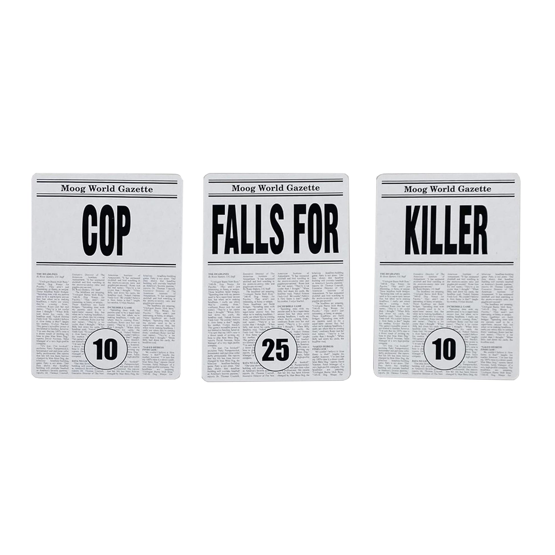 This game is a little different. Youre dealt a hand of Headline Cards with words on them, each with a point value. When its your turn, construct the headline that earns the highest points... and often the biggest laughs! The winner is the first player to get 500 points.
