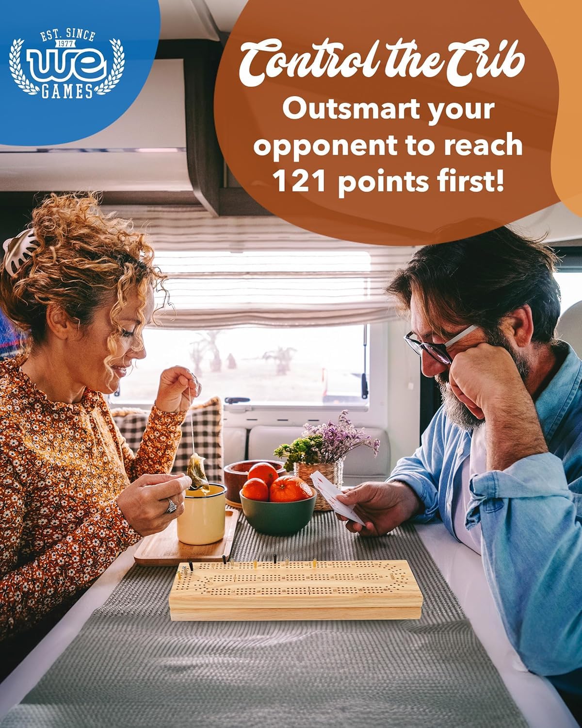 View compareWE Games Custom Engraved Wooden Cribbage Game Set Natural Stain, Continuous 3 Track for 2-3 Players, Travel Cribbage Board with