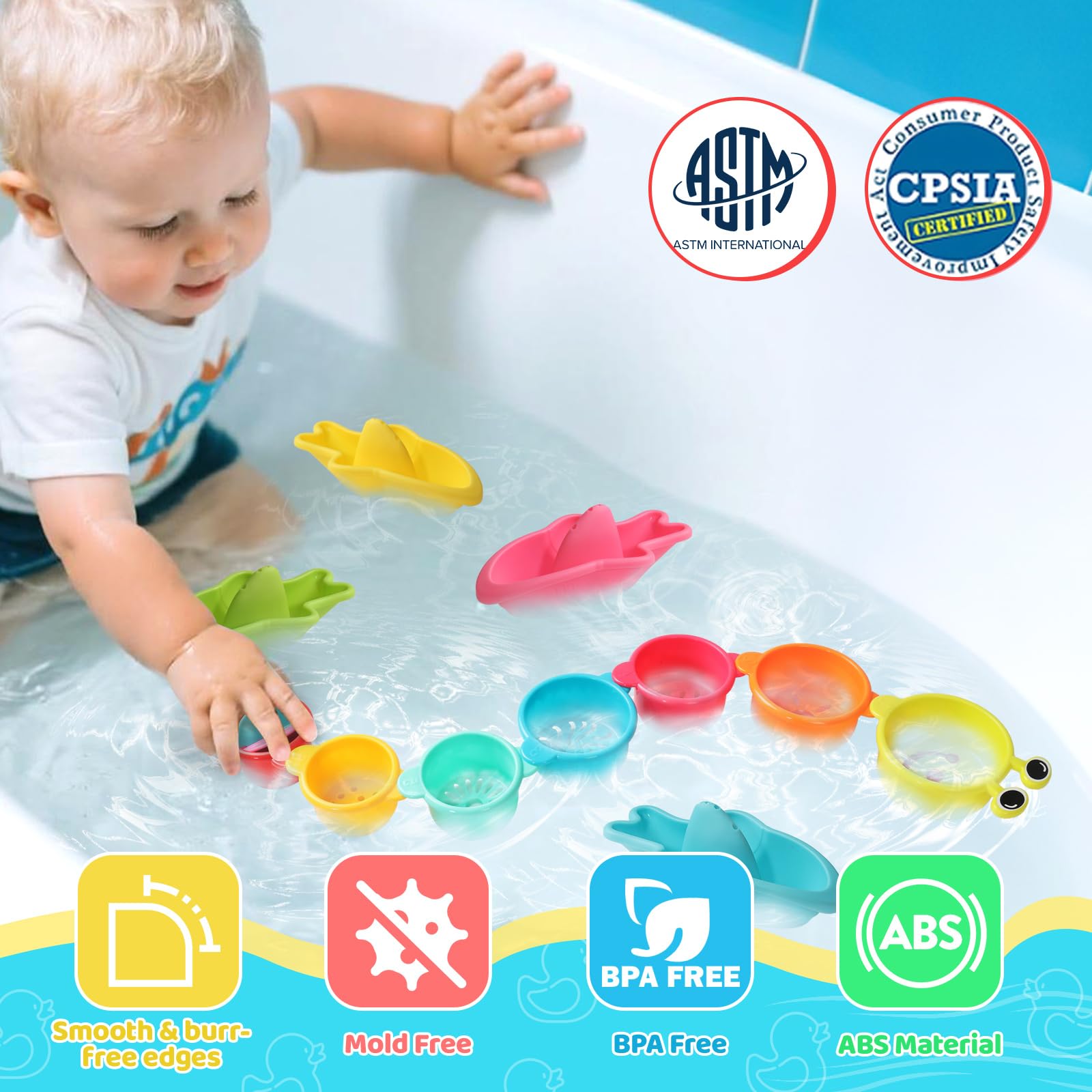 11 PCS Toddler Bath Toys for Kids Ages 1-3 Baby Shower Toys Mold Free Bathtub Toys for 12-18 Months Pool Water Table Sand Toys Stacking Cups & Floating Boats for Kids 2-4 Christmas Stocking Stuffers