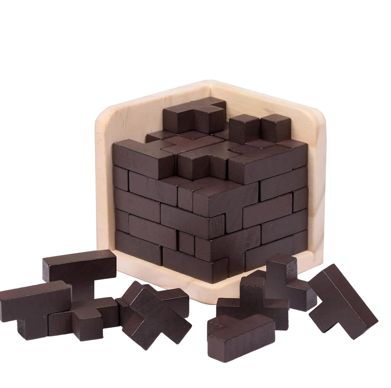 3D Wooden Brain Teaser Puzzle Cube Wooden Puzzles T-Shaped Jigsaw Logic Puzzle Game Puzzles Educational Toy for Kids and Adults