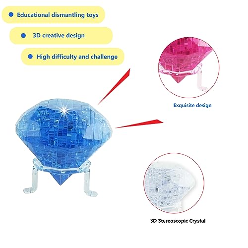 3D Crystal Diamond Puzzle, Crystal Puzzle Brainteasers For Puzzlers Ages 16 And Up, Pink And Blue, 41Pcssize:2.7Inch*2.4Inch*0.9Inch Color:Pink, Blue, Transparent