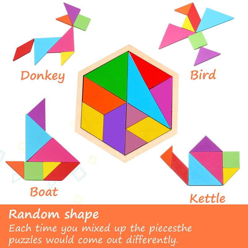 Features: The Wood Block Puzzle Is An Educational Game That Encourages Boys And Girls' Cognitive Development And Helps Them Learn About Geometric Shapes, Symmetry, And Spatial Relationships. With Its Colorful, Wooden Blocks' Shapes, It Attracts Their Attention, Making Learning Interesting. Wooden Tangrams Are A Nice Way To Spend Quality Time With Your Family And Partners. It Can Bring Everyone Together, Solve Problems, And Communicate Creatively. Specifications: Material: Wooden Color: Colorful Size: About 5.51 X 5.51 X 0.24 Inches/ 14 X 14 X 0.6 Cm Package Includes: 12 X Wooden Tangrams Notes: Manual Measurement, Please Allow Slight Errors On Size. The Color May Exist A Slight Difference Due To Different Screen Displays. Little Ones Should Use Our Product Under The Supervision Of Adults In Case Of Choking Risk.