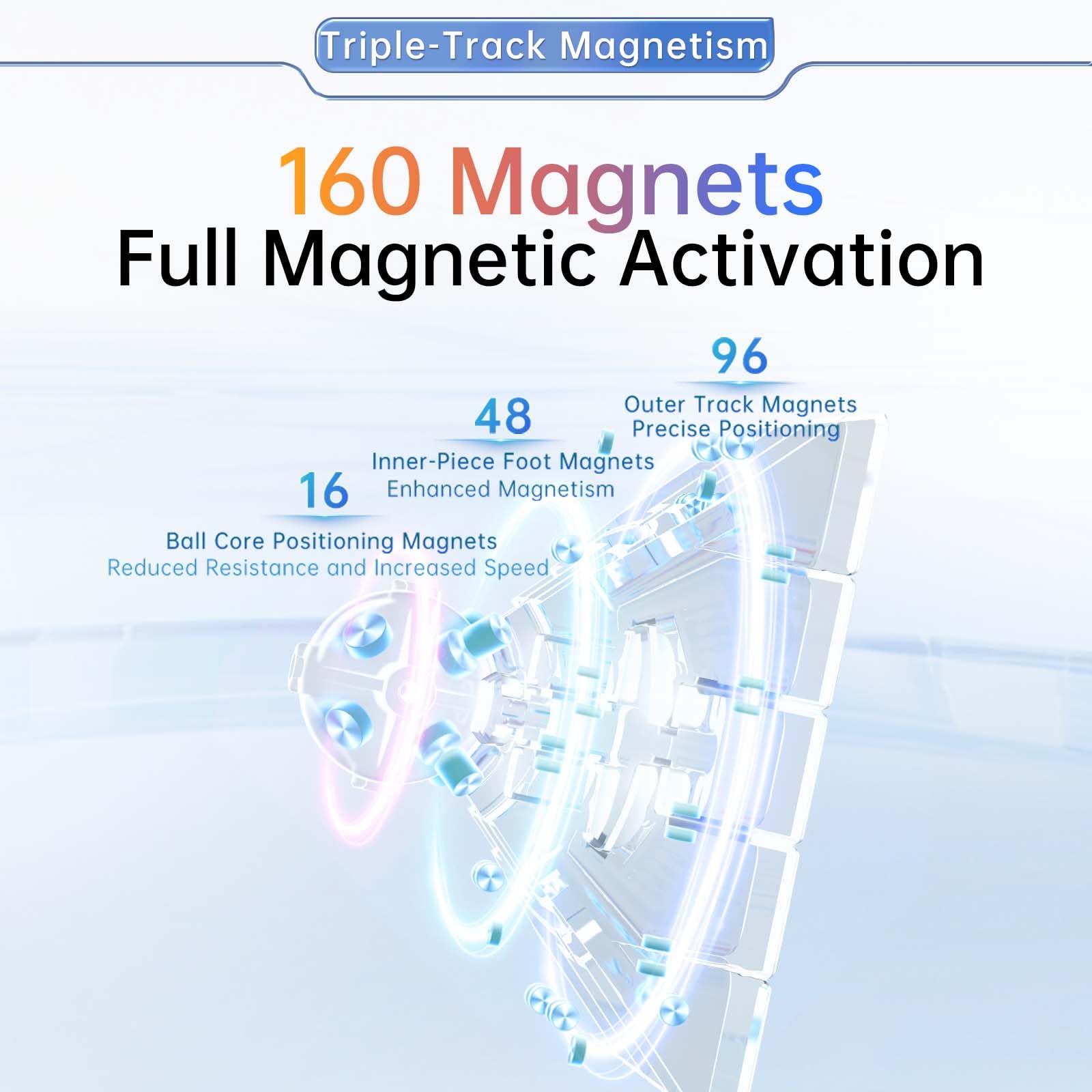 2024 Flagship Edition Cube: MoYu Aochuang V6 5x5! Experience the next evolution of 5x5 speed cubes with unmatched precision and stability. With its revolutionary design and compact 60.5mm size, The Aochuang V6 is the ideal cube for competitive cubers seeking record-breaking solutions! | Triple-Track Magnetic Design: The Triple-Track version takes it up a notch with 160 magnets: 96 corner-edge, 16 ball-core positioning, and 48 inner-piece foot magnets for even greater stability and explosive speed. Giving you the edge in speed and stability during even the fastest solves. | Six-Sided Integration: The Aochuang V6 features a Six-Hole Integrated Core that stands upright, firmly embedded with the center piece. Say goodbye to misalignment and lockups caused by rough turnings! This design ensures a smoother and more reliable solution. | V-shaped Section: The Aochuang V6