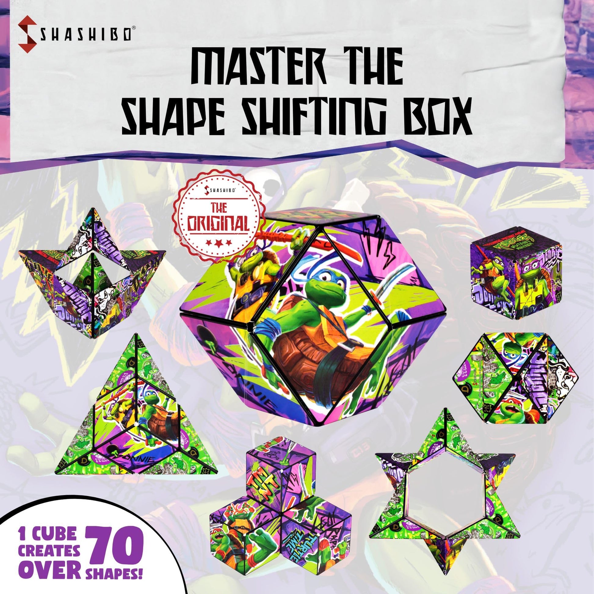 - Q: What is the Shashibo Teenage Mutant Ninja Turtles Shape Shifting Box? A: The Shashibo Shape Shifting Box is an award-winning magnetic puzzle cube designed for creative play. With 36 rare earth magnets, it can transform into over 70 different shapes, providing endless opportunities for fidgeting and puzzle-solving.