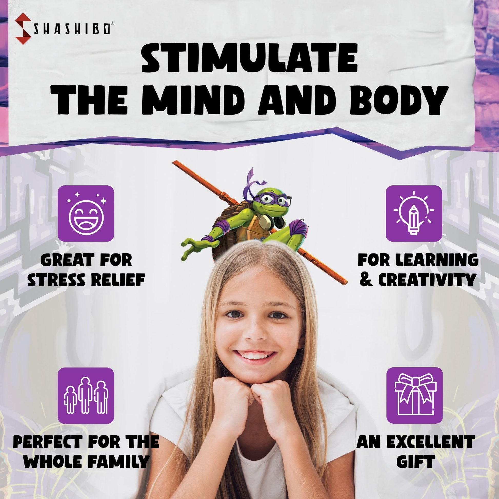 Shashibo Teenage Mutant Ninja Turtles Shape Shifting Box - Award-Winning, Patented Magnetic Puzzle Cube W/36 Rare Earth Magnets - Fidget Cube Transforms Into Over 70 Shapes (Donnie Series 2)