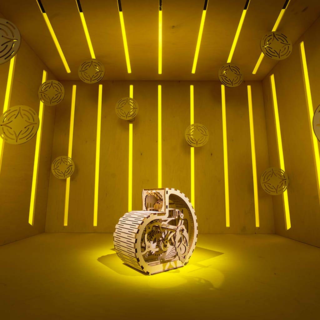 Really big mechanical construction snail money. It really moves all around and allows you to keep your coins in there. Assembled model size: 200 х 170 х 195 Package Size: 302 х 280 х 43 number of parts: 83 Material: sanded plywood, elastic yarn, acrylic piece, wax and wooden axles – 8 Items. Weight: 1.41 kg additional information: take parts out of wooden holders and assemble by manual. Mr plywood - is an inventor, who developed magic mechanical models for adults and children all around the Globe. Every mechanical wooden model – is a journey in the world of magical discovering that you create by yourself. We believe, that models must be unique, different and impressive. Mr plywood. Fantasy universe begins… one of the first invention of Mr.Plywood, he was inspired by his pet – giant snail called slipper.