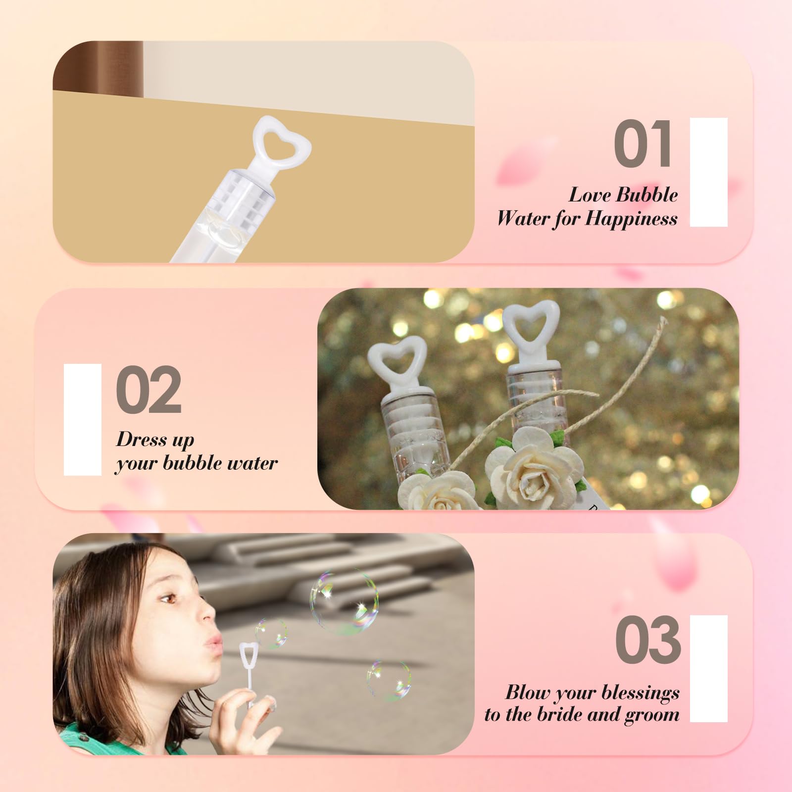 48 Pack Bubbles for Wedding Party Favors - Mini White Heart Bubble Wand Bulk with Bubbles Refill Solution Toys for Kids mature-themed Wedding Anniversary Valentine's Day Propose Bachelorette Party Favors