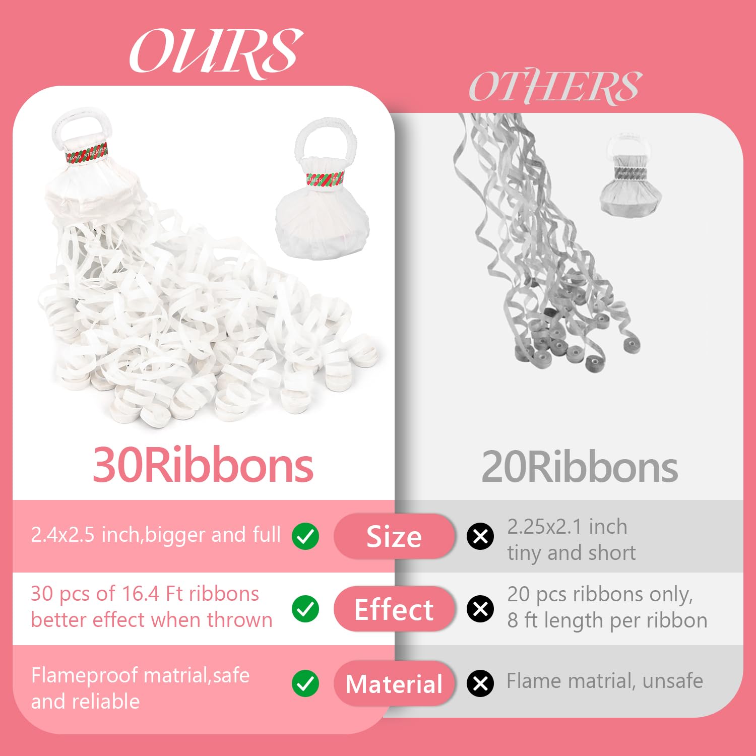 Features & Benefits:Application: These paper hand throw streamers poppers can be used for any party, which add atmosphere to special events such as weddings, celebrations, parties, anniversary, birthday, Valentines Day christmas, new year eve party, graduation party, championship games, award ceremony, confetti day and more!Specifications:Quantity: 10 packColor: WhiteMaterial: tissue paperNote:Please keep them away from children in case they eat themPlease save in a cool dry place, keep the colors, extend shelf life