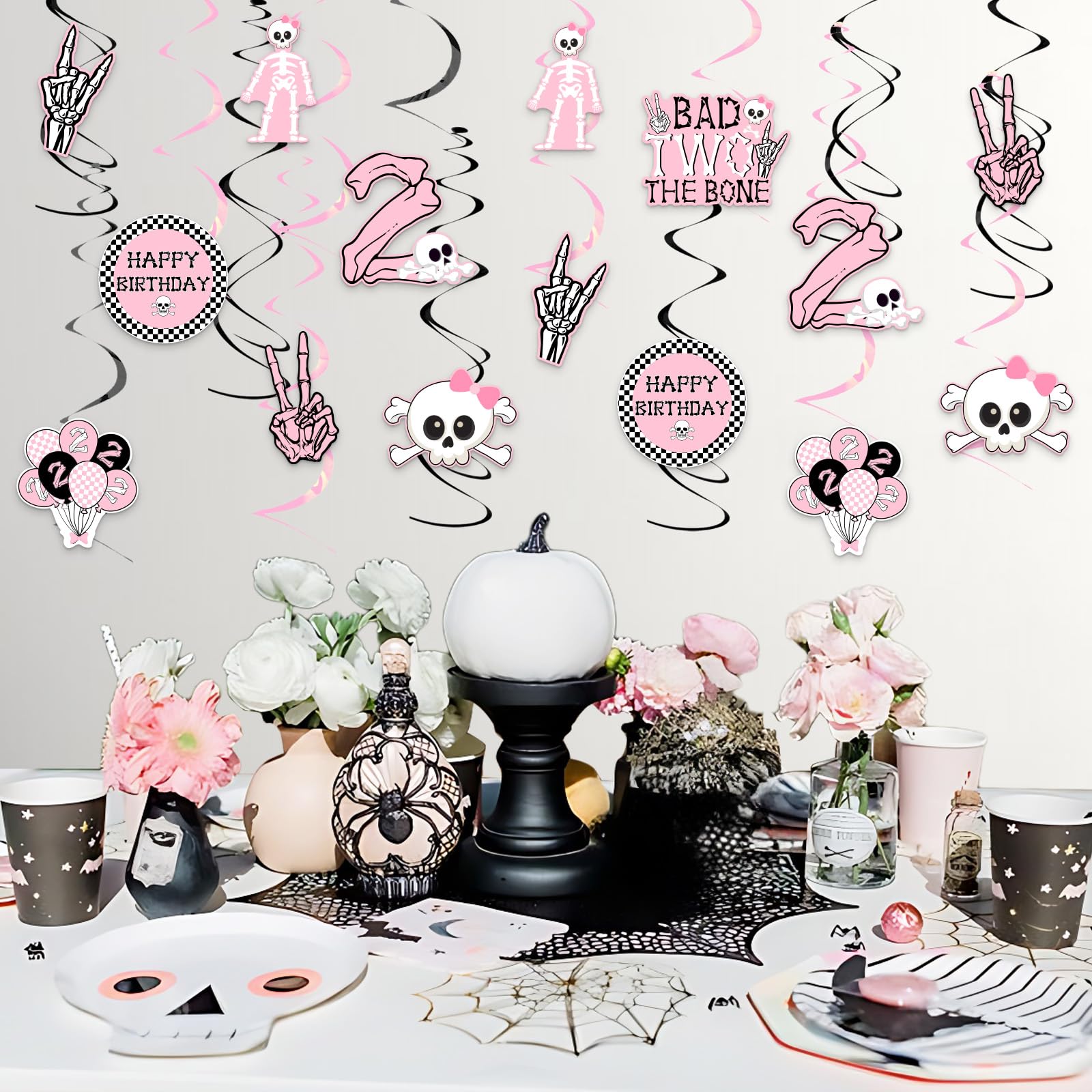 - Q: What kind of party theme do these decorations match? A: They match well with rock and roll themes, music-themed parties, and bad two the bone celebrations.