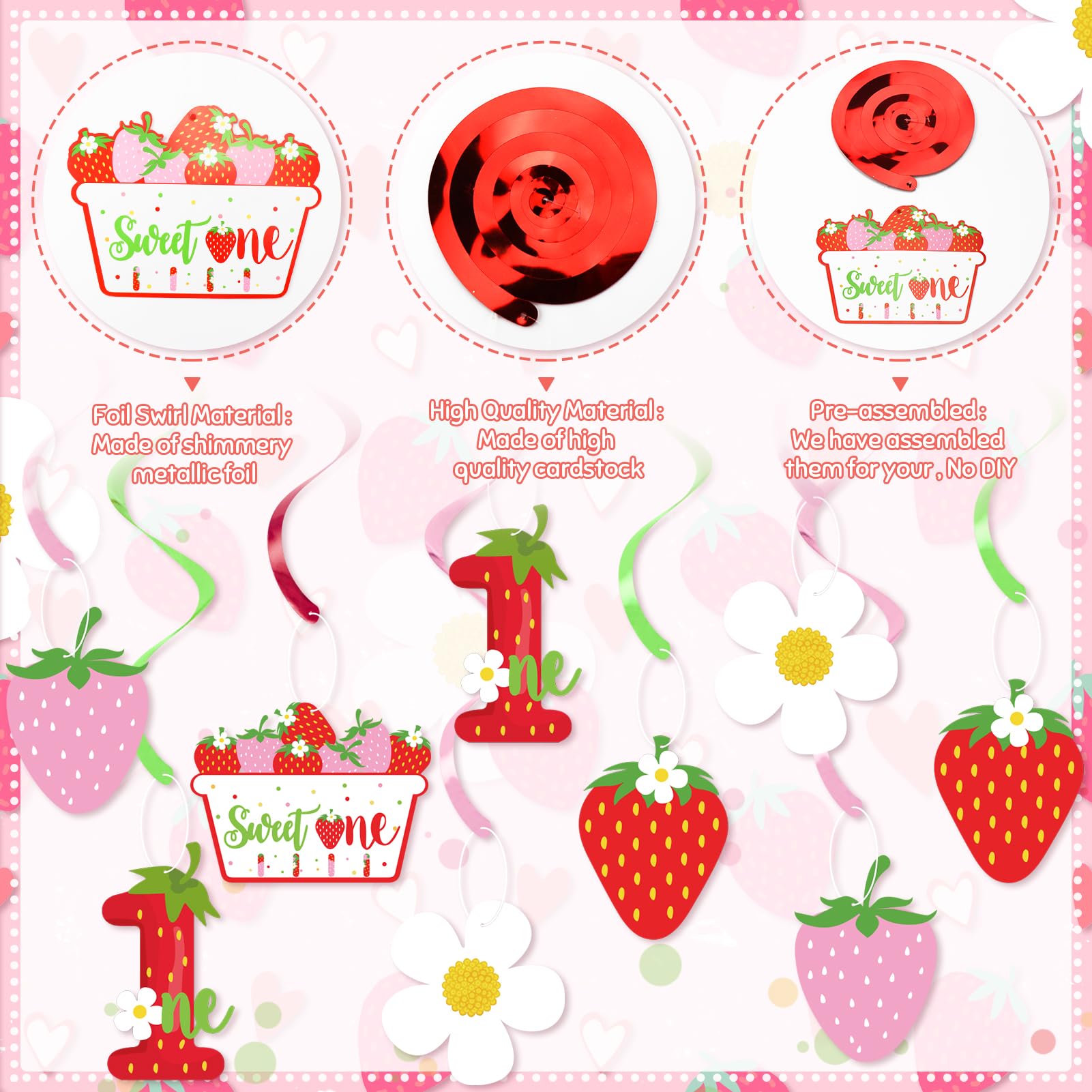 Strawberry 1st Birthday Party Hanging Swirls Decor, Fruit Strawberry Party Hanging Streamers for Strawberry Sweet One Birthday Girls Berry Sweet Themed First Birthday Summer Strawberry Party Supplies