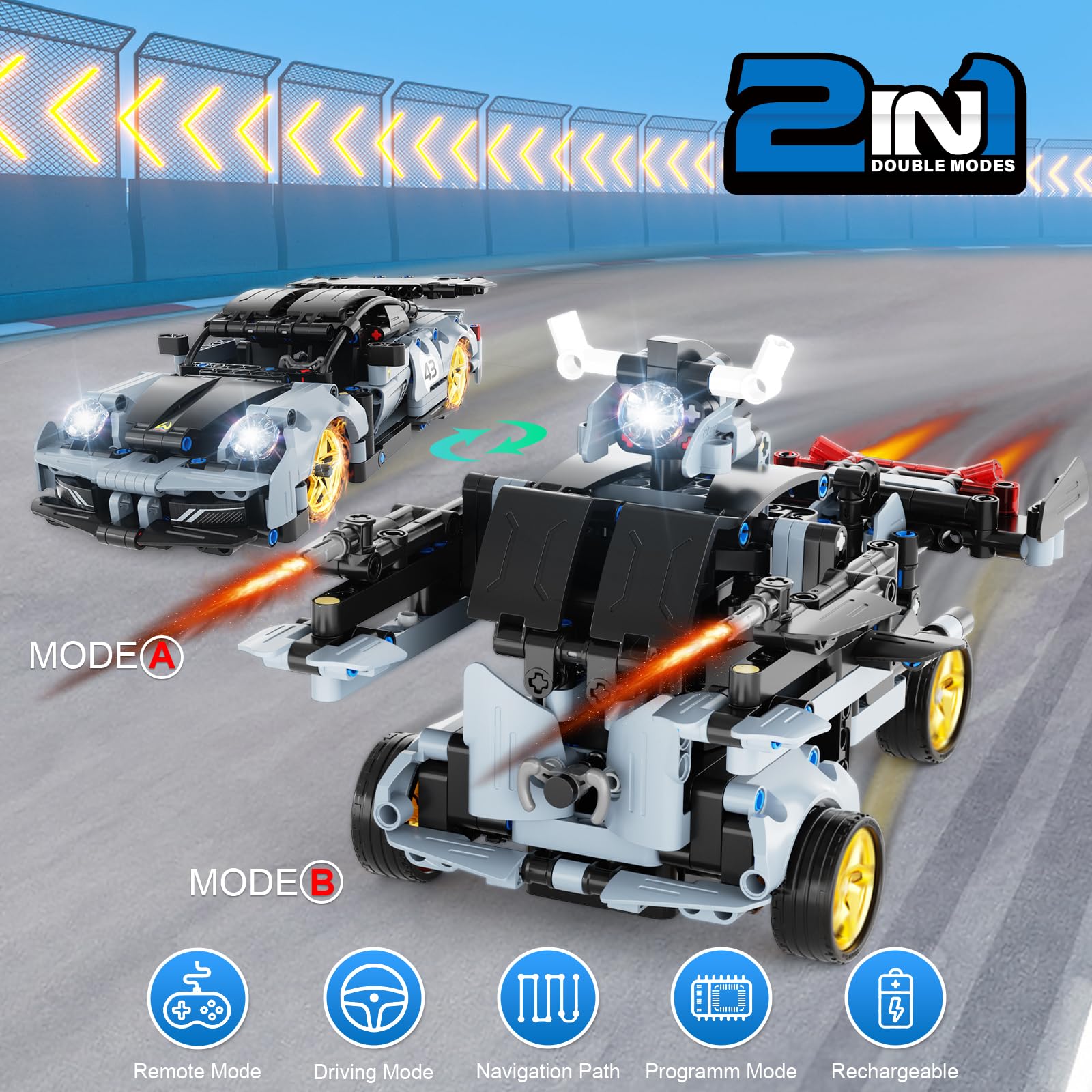 2-In-1 Robot/Car Building Kit: The Stem Toys Can Be Builded Into 2 Different Styles Model. Model A Is A Supercar With Plenty Of Power, Remote Control Freely. Model B Is A Battle Robots With Authentic Characteristics. Kids Can Enjoy 2 Different Build-And-Play Experiences. | Remote & App Control: This Robot&Supercar Building Blocks Set Is Easier To Move, Drive, Turn And Rotate On A Smooth, Flat Surface, And Easy To Remote. Kids Can Either Via An App Or By Using Remotes To Make Their Supercar/Robot Perform Operations Of Their Choosing. The App Also Has A Variety Of Ways To Play The Robot/Car, Such As Path Mode, Gravity Mode, Drive Mode And Stem Programming Mode. Let Kids Explore More Fun Gameplay In The App! | Stem Learning: Bricks Integrated With Mechanic, Robot & Supercar Elements. Child Practices Creativity, Problem Solving And Team Work From Connecting The Blocks And Creating The Toys. Help Develop Fine Motor Skills, Improves Children