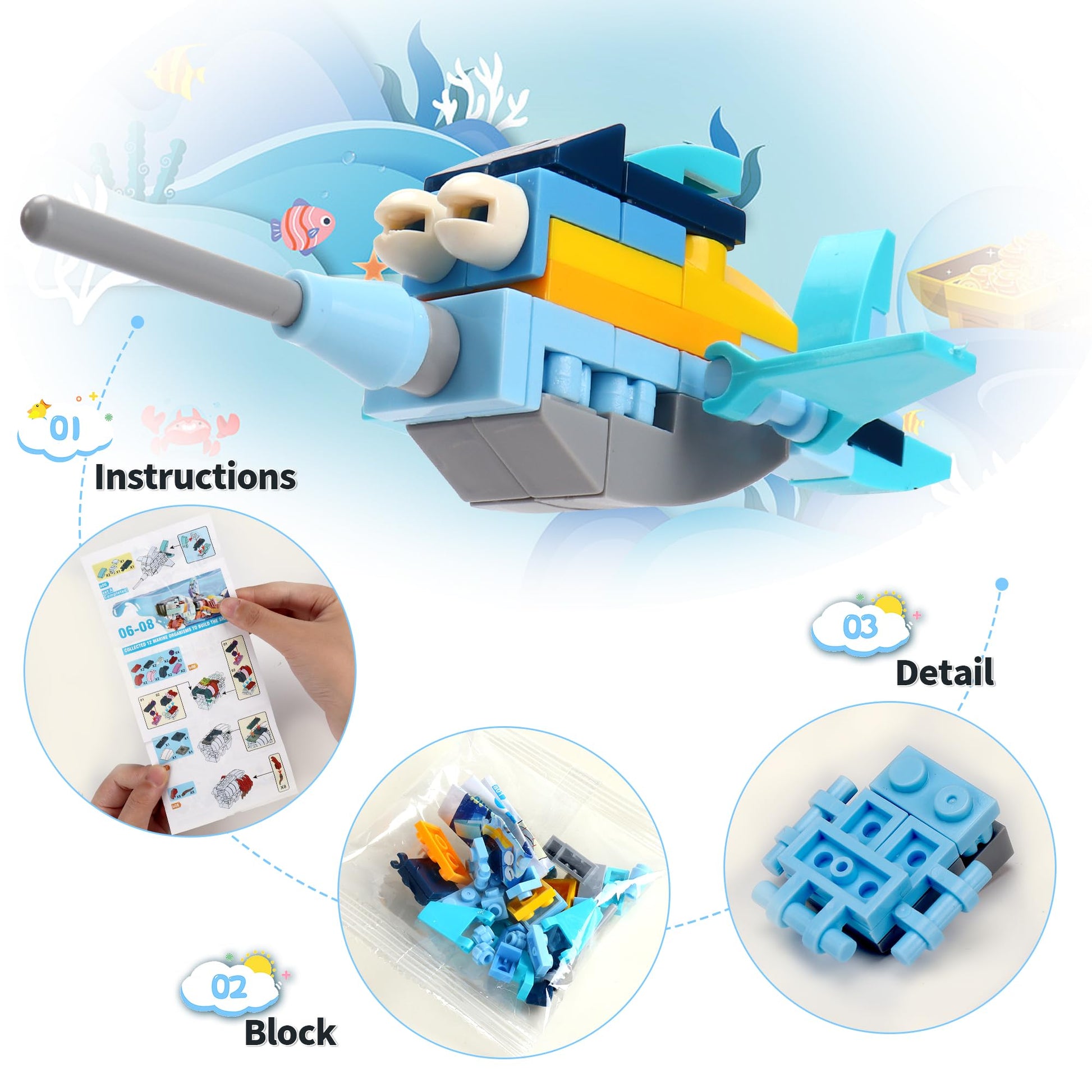 • Q: What educational benefits do these building blocks provide? A: These ocean animal building blocks are great educational toys that help improve children's hands-on skills, logical thinking, independent thinking ability, and imagination while they play.