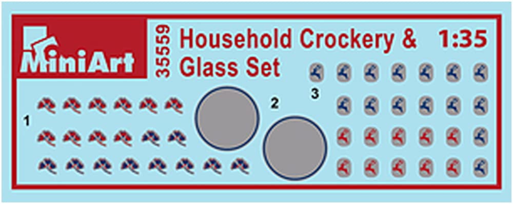 - Q: What materials are included in the MiniArt household crockery & glass set? A: The kit includes various plastic accessories that represent household crockery and glass items, perfect for enhancing your model dioramas.