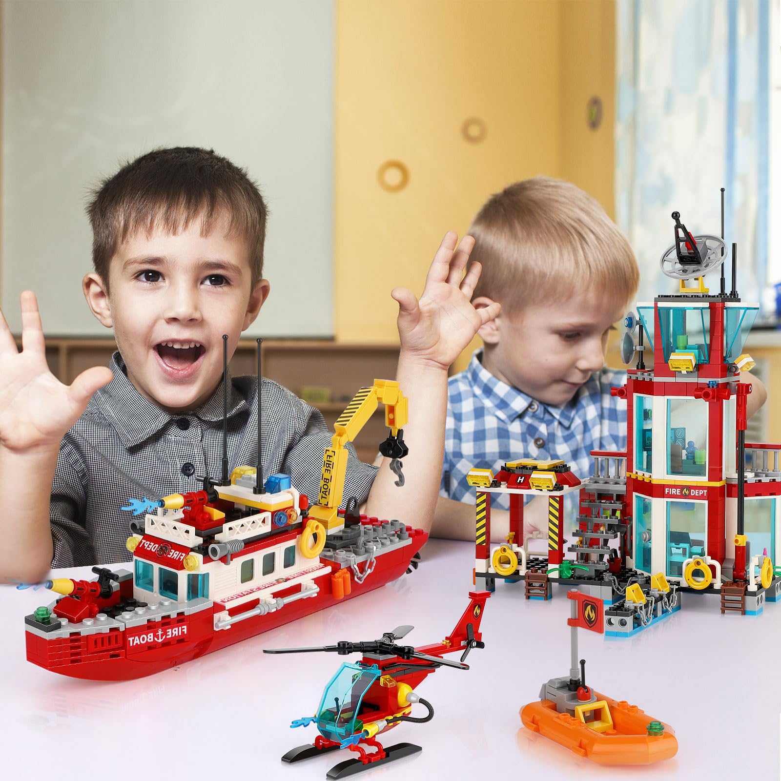 - Q: Is this building kit compatible with other major brick brands? A: Yes, the City Fire Station building blocks set is compatible with most major brick brands, allowing kids to mix and match with their existing collections.