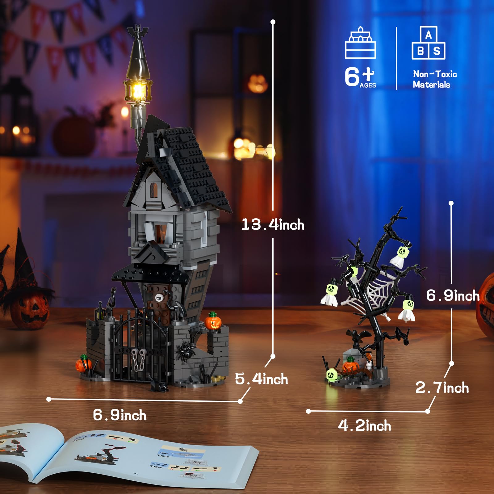 - Q: What are the main features of the Tweandar Halloween Haunted Mansion Building Set? A: The Tweandar Halloween Haunted Mansion Building Set includes 586 pieces that intricately capture the spooky details of Jack's haunted abode. It features Halloween-themed elements like bats, spiders, cobwebs, crows, glow-in-the-dark Jack-O'-Lanterns, and skeleton ghosts, making it a perfect addition to your Halloween decorations.