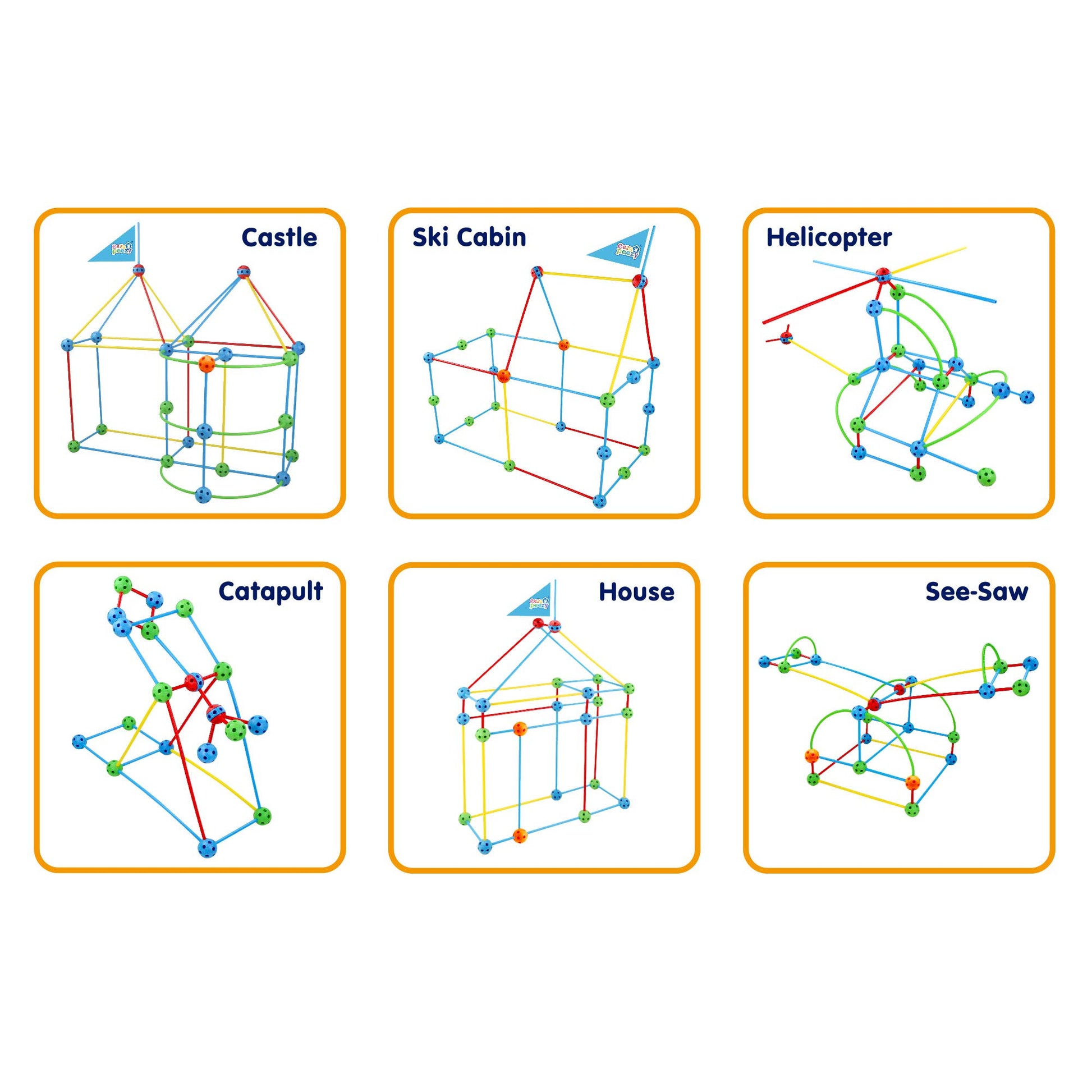 - Q: What types of structures can my child build with this toy set? A: With the Connect n Build Starter Pack, children can create various structures such as castles, ski cabins, helicopters, catapults, houses, and seesaws, encouraging imaginative play.