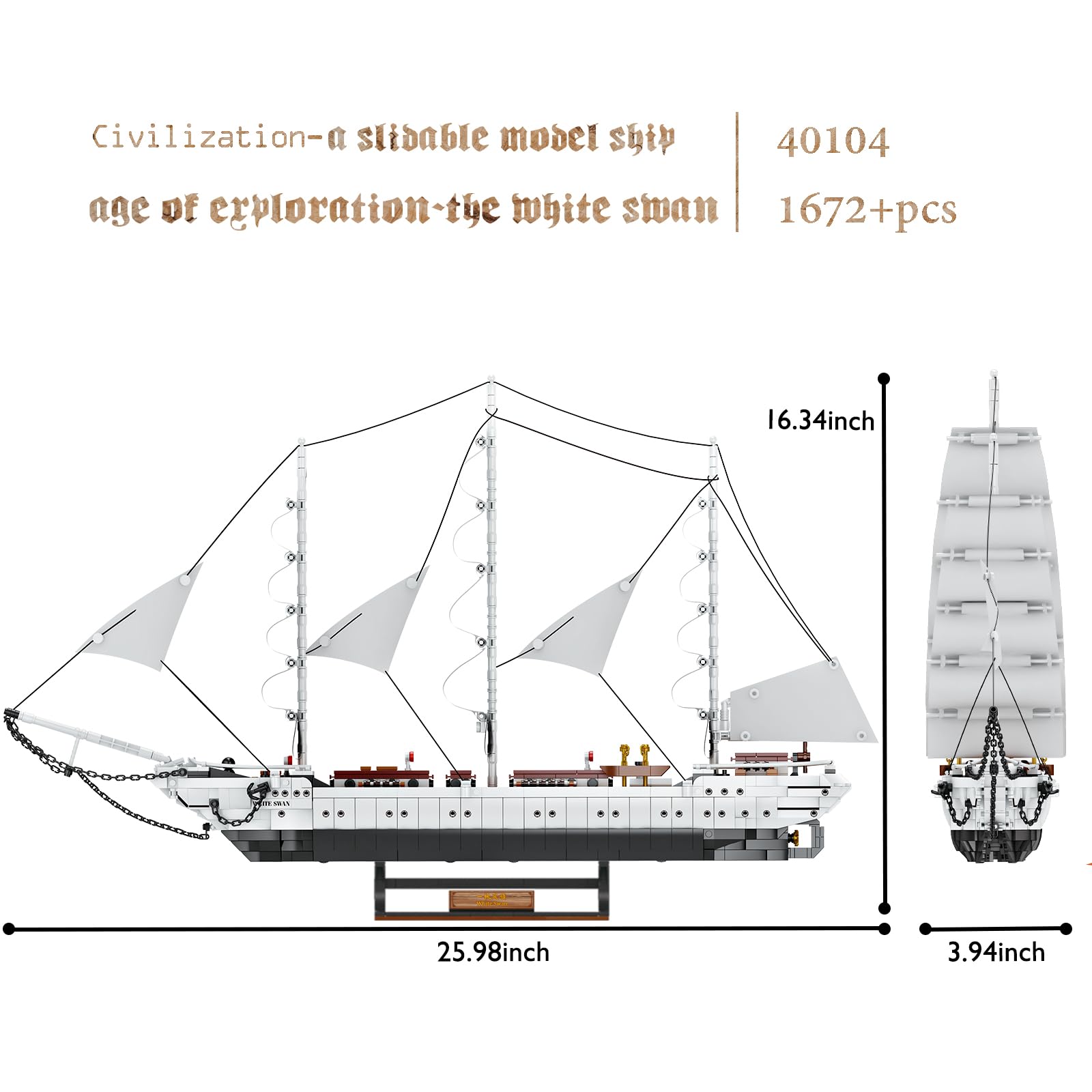 JMBricklayer Ship Building Toy - Building Sets for mature-themed 40104 White Swan Model Ship Attractive Showroom Decoration Pirate Ship & Nautical Adventure Experience Construction Toys