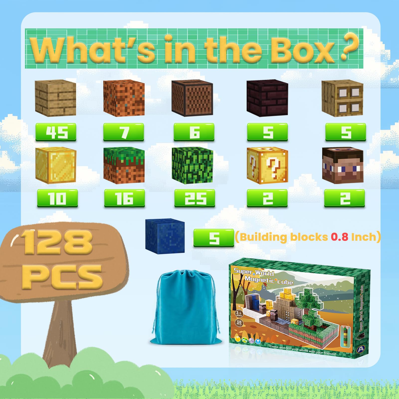 Jollynamy Magnetic Blocks For Kids - 128Pcs Building Toys For Toddler, Building Magnet Cube Toy For Boys Girls, Stem Sensory Edu