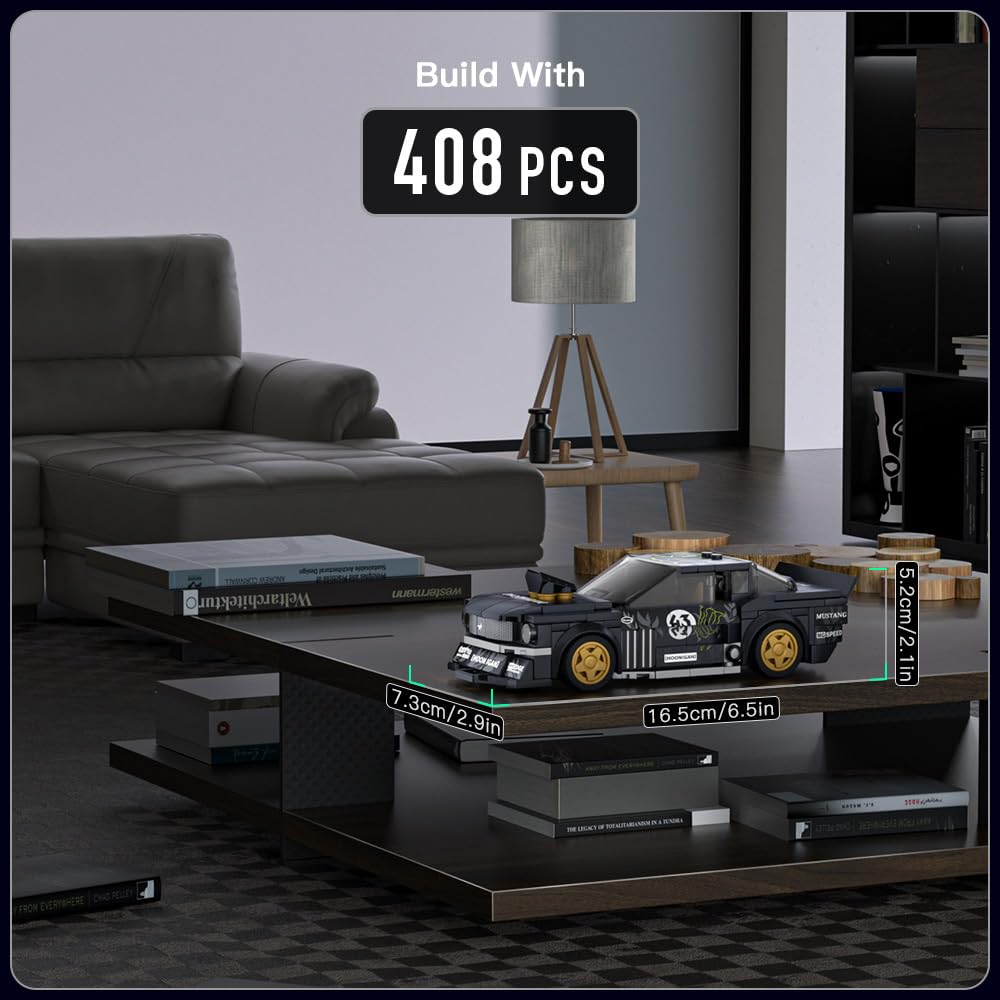Mould King Speed Champion Car Building Toys with Acrylic Display Case, Model Race Car Toy Building Blocks Kit 27024 Collectible Racing Vehicle Set for Kids Age 8+ Teens Adults, 408Pieces
