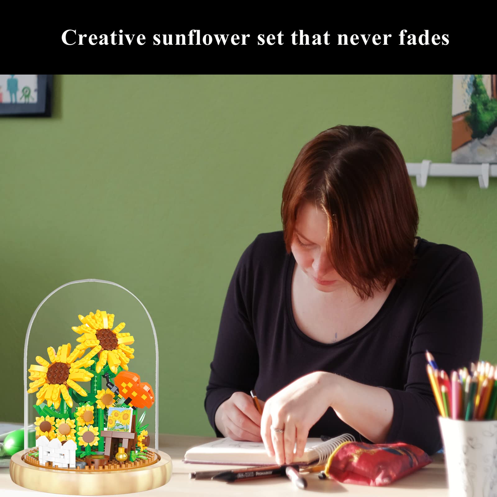 QARULUS Sunflower Flower Bouquet Building Toy Mini Bricks Flowers Set mature-themed Botanical Collection Friends Set DIY Plants Bonsai Tree Valentine's Christmas New Year Birthday for Women