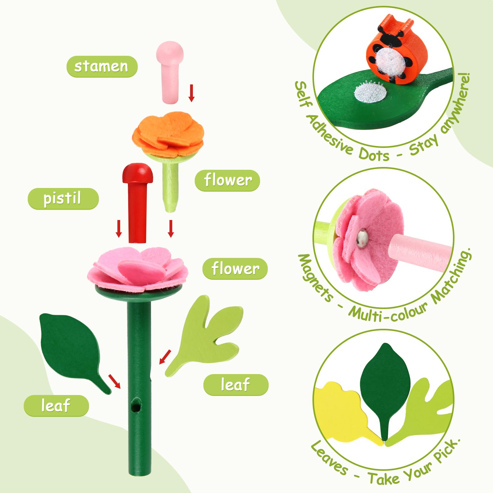 Wooden Flower Garden Building Toys For Kids, Stem Educational Activity Preschool Kit Gift For Boys Girls Age 3 4 5 6 7 Years Old