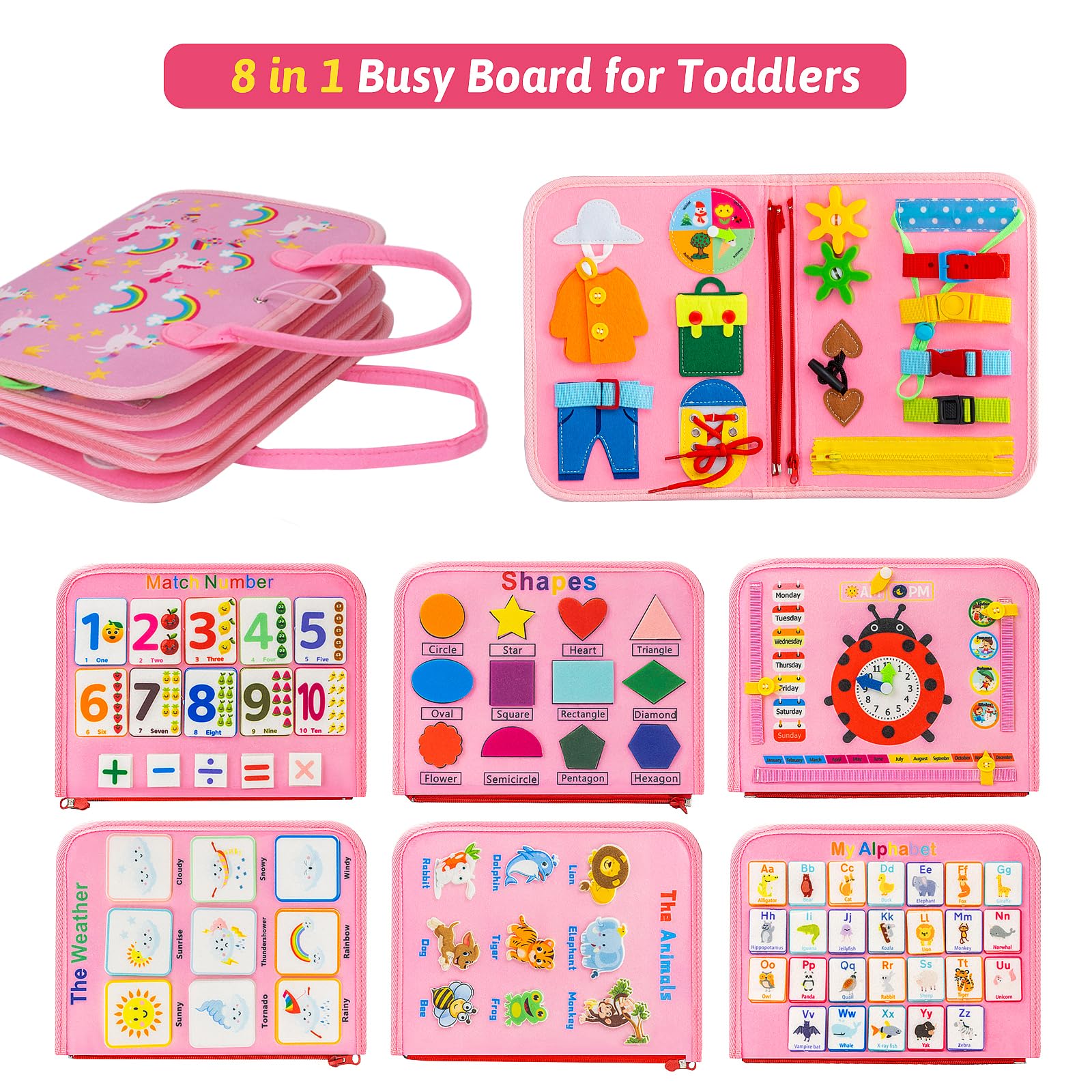 Aixmeet Toddler Montessori Toys, Sensory Busy Book, Busy Board For Toddlers 1234 Years Old, Preschool Learning Activities With L