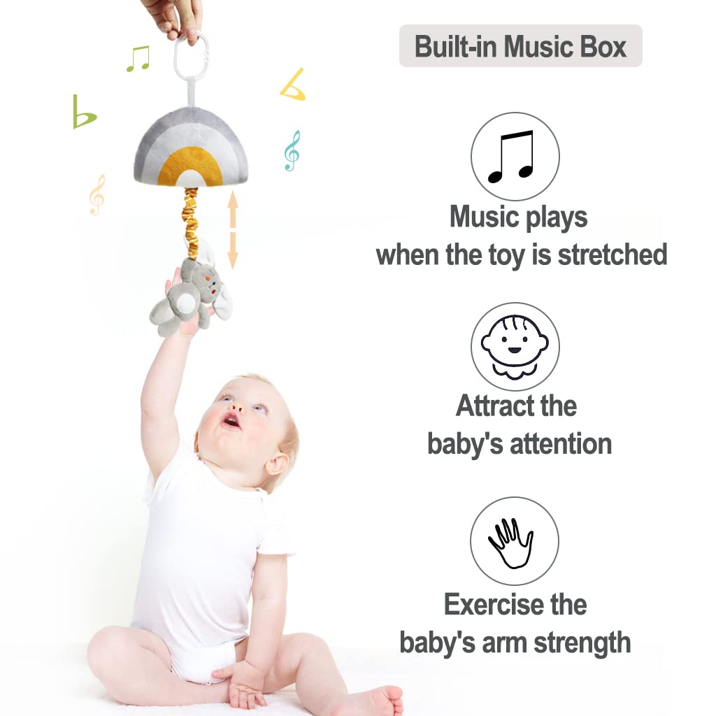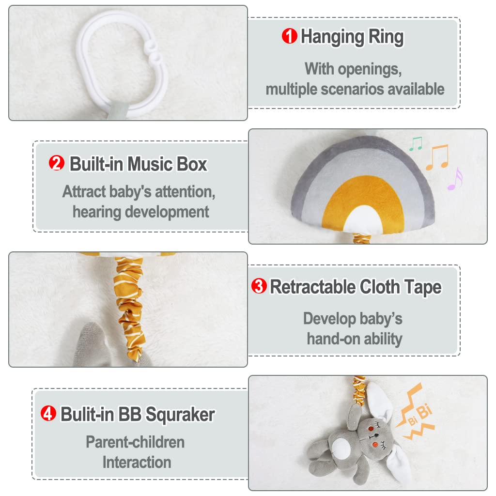 Blublu Park Baby Hanging Rattle Toys, Baby Lullaby Pull Musical, Soft Plush Early Development Stroller Car Toys With Squeaker Fo