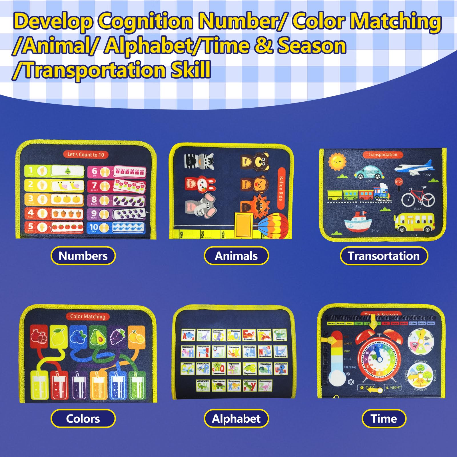 Busy Board ,Montessori Sensory Toys for Baby 3+Year Old,Learning Toys Busy Book 12 Pages Educational Activity Basic Dress Motor Skills,Kids Travel Toy for Plane Car,Birthday Gift for Boys Girls