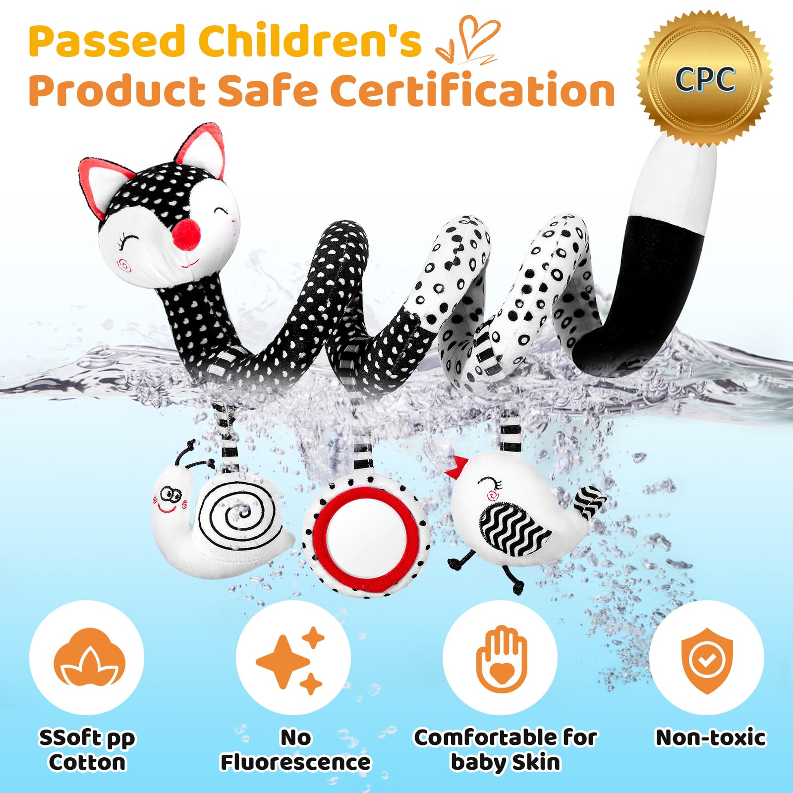 - Q: Can I attach the FATI Car Seat Toy to different surfaces? A: Yes, the FATI Car Seat Toy is designed to spiral easily onto various surfaces such as car seats, stroller bars, crib rails, baby gyms, and shopping cart handles, providing entertainment wherever you go.